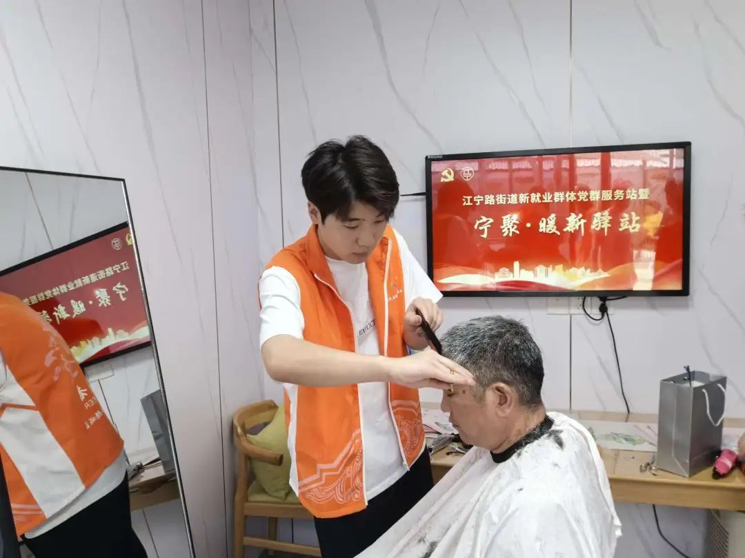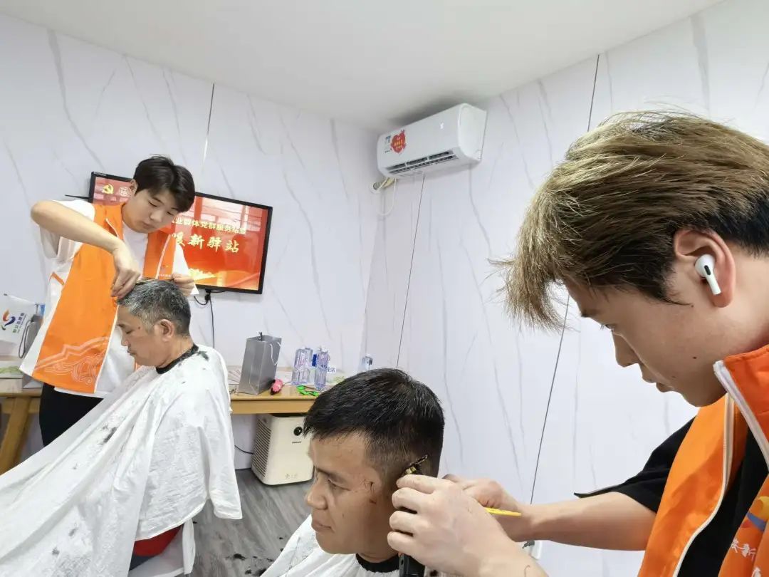 与此同时,一场公益理发服务吸引了不少小哥的体验。
