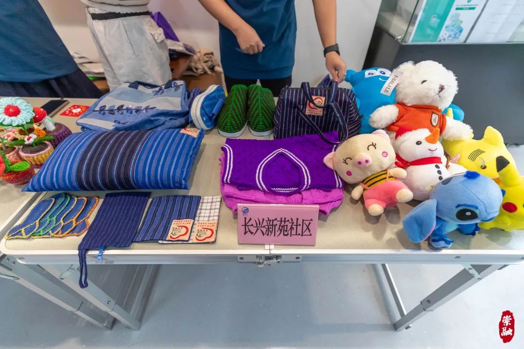 摊主汤永蕾是长兴镇鹭岛华庭社区居民委员会的工作人员,她告诉记者:“摊位上的手工艺品都是社区的困难妇女、待业宝妈等一起制作的,趁此义卖活动的机会,带来便宜出售,售款会全部捐献。”