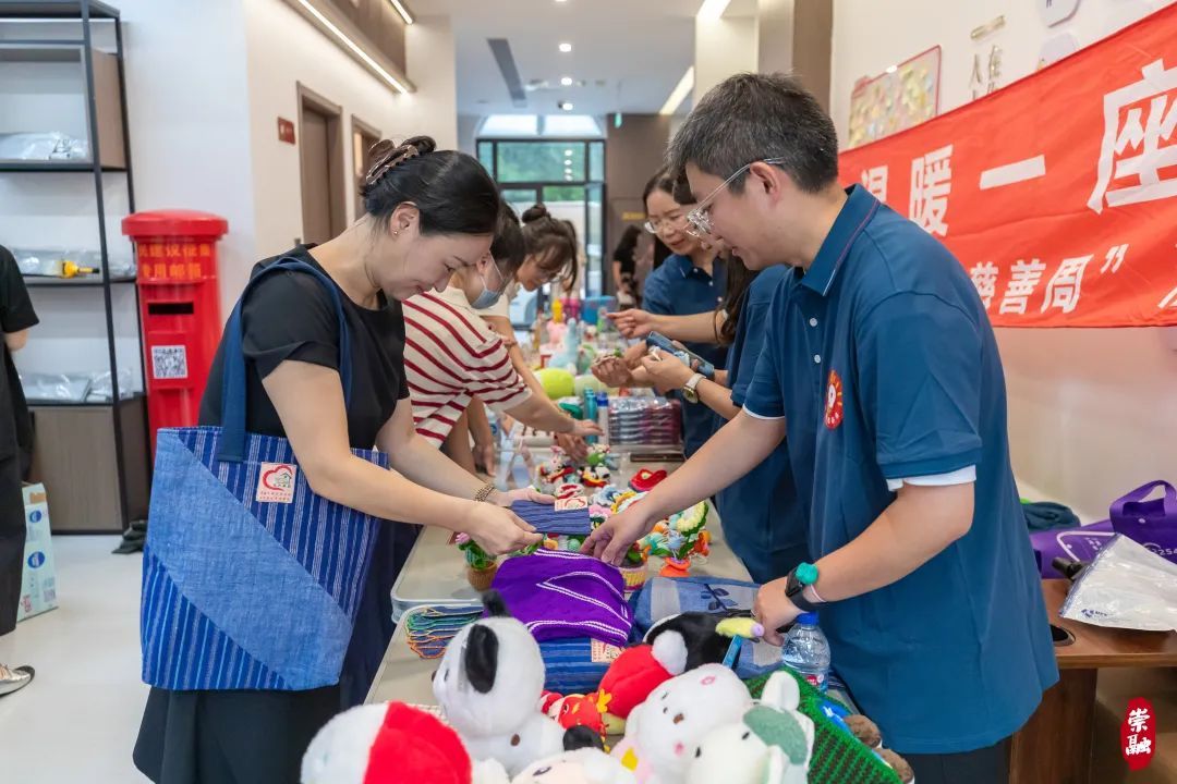 不一会儿,现场已是人头攒动,不少市民在摊位前选购商品。其中,创意手工艺品摊位最受欢迎。“我买了一个土布包,是阿姨们手工制作的,既环保又实惠,还能献出自己的爱心,为慈善事业尽一份力。”居民周女士说。