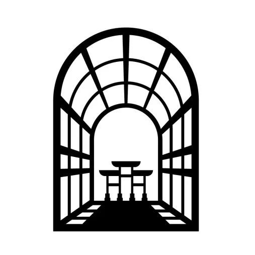 书院的另一商标图形则生动还原了其中庭的建筑特色。中庭采用巴西利卡风格设计,挑高的穹顶下设有3D打印的“光启之门”艺术装置。商标图形的镂空设计巧妙地体现了中庭空间的透光性和灵动感,使整个商标在视觉上充满通透与生气。