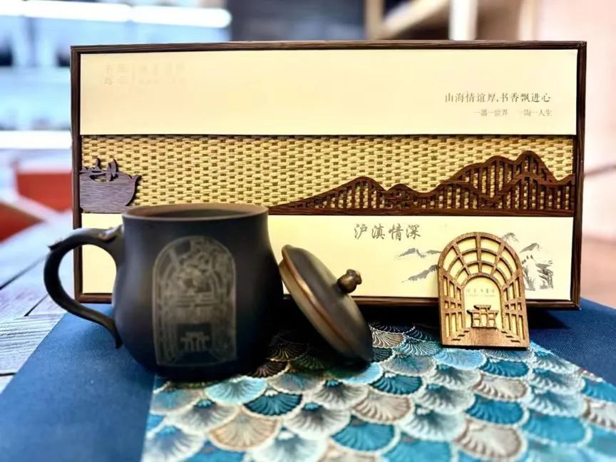 成功晋级2024上海伴手礼(文创百货类)专场第二轮评选的“琼玉礼盒”,内有国家级非遗项目建水紫陶手工伴读杯和光启之门木质冰箱贴。建水紫陶来自云南省红河州建水县,被誉为滇南琼玉,寓意着“书中自有颜如玉”。冰箱贴则以原木光线雕刻手法描绘了书院中庭景象。这个伴读杯深受书院读者喜爱,更特别的是,它是由云南省红河州特殊教育学校的特殊学生们制作。这组“琼玉”的结合,不仅体现了两地的历史文化底蕴,更蕴含着“沪滇协作、山海情深”的美好寓意。