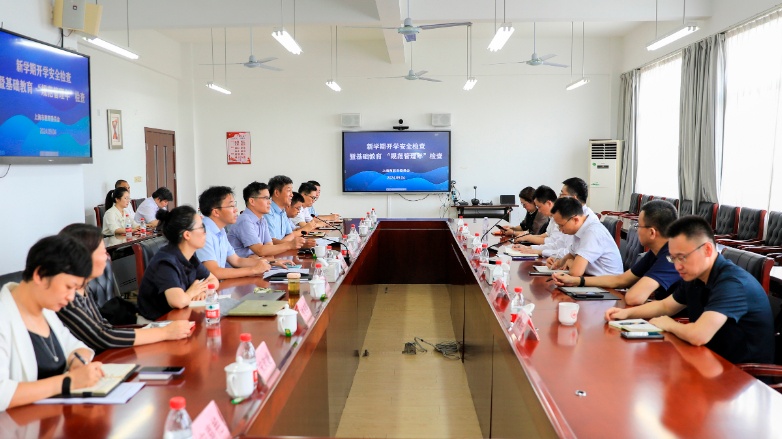 2024年9月4日下午,市教卫工作党委副书记、市教委副主任顾红亮带队到松江区开展开学安全检查暨基础教育“规范管理年”检查。市教委后勤保卫处处长贺小虎、副处长黄峰,市教委教育技术装备中心主任徐涛,区教育局局长陈小华、副局长付炳建、朱永出席。市教委基教处、青保处相关负责人,区教育局基教科、安全科、后勤中心、基建中心、安全中心相关负责人参加。