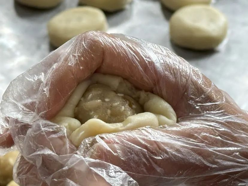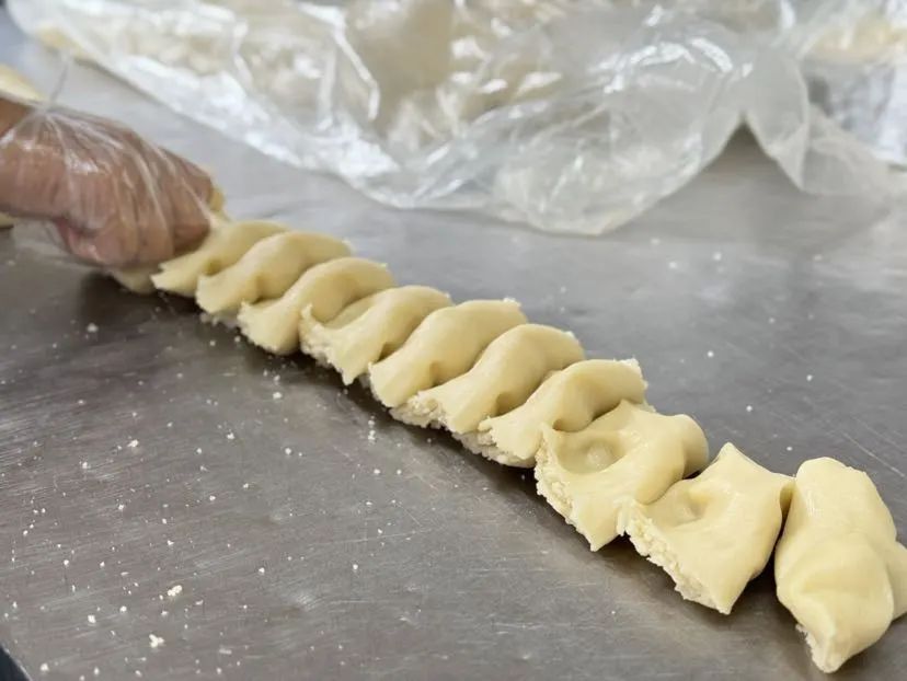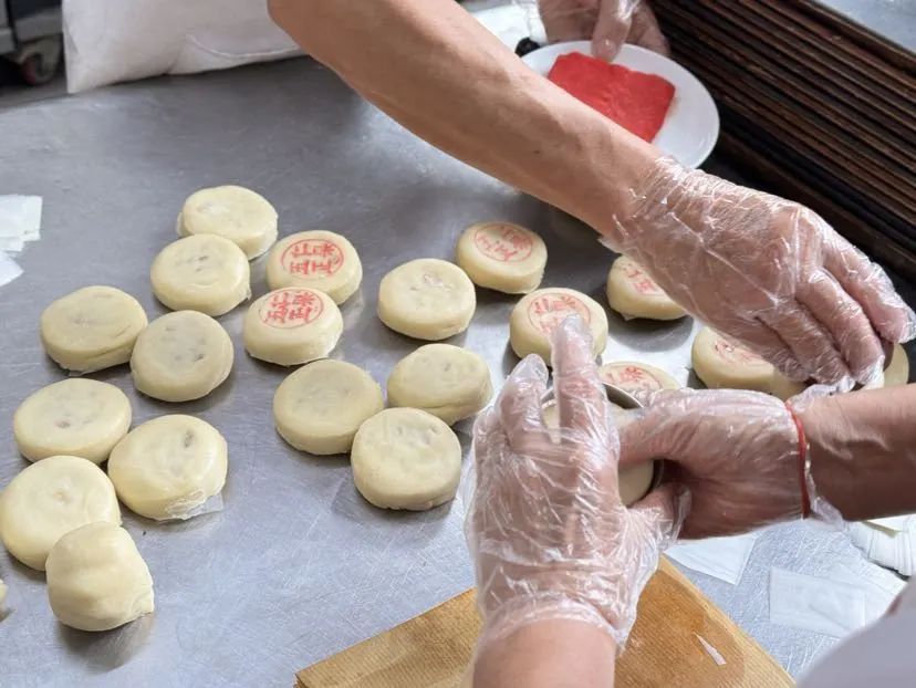 手工揉面,捏团包馅,脱模盖章,走进后厨,果仁的香味弥漫其中,几位工人身着白色工作服,正忙碌地制作着五仁月饼。据了解,今年八月份德林坊再次荣获2024上海名特优月饼称号。这些月饼之所以受欢迎,不仅因为其清淡健康的口味,更重要的是它们全部由经验丰富的师傅们从选料到和面、起酥、包制、烘焙,沿袭传统古法工艺手工制作。酥皮和馅料的比例被精确控制在1:1,做到了“一碰即碎”的酥脆感。