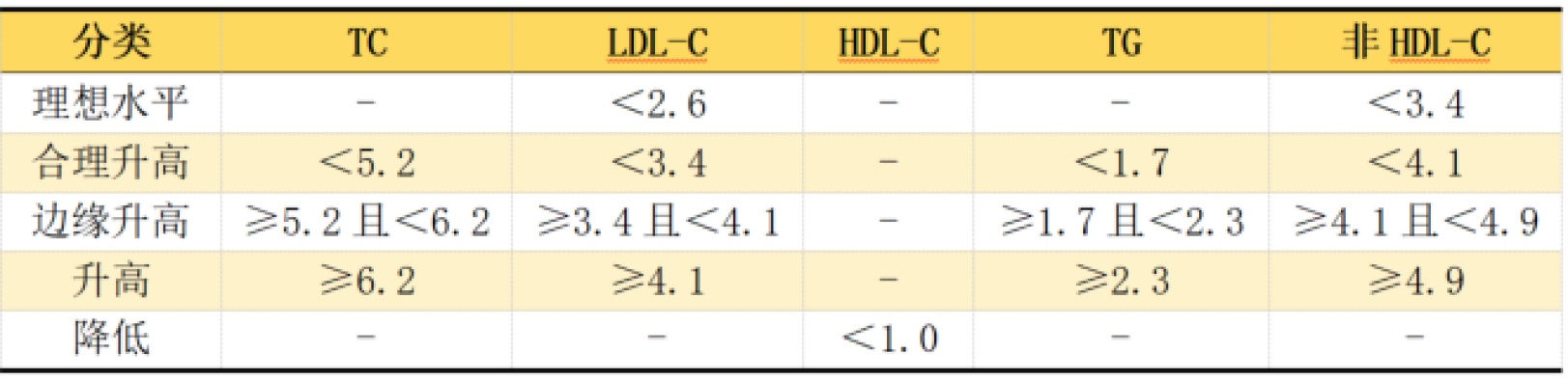 血脂正常参考标准(如下表)