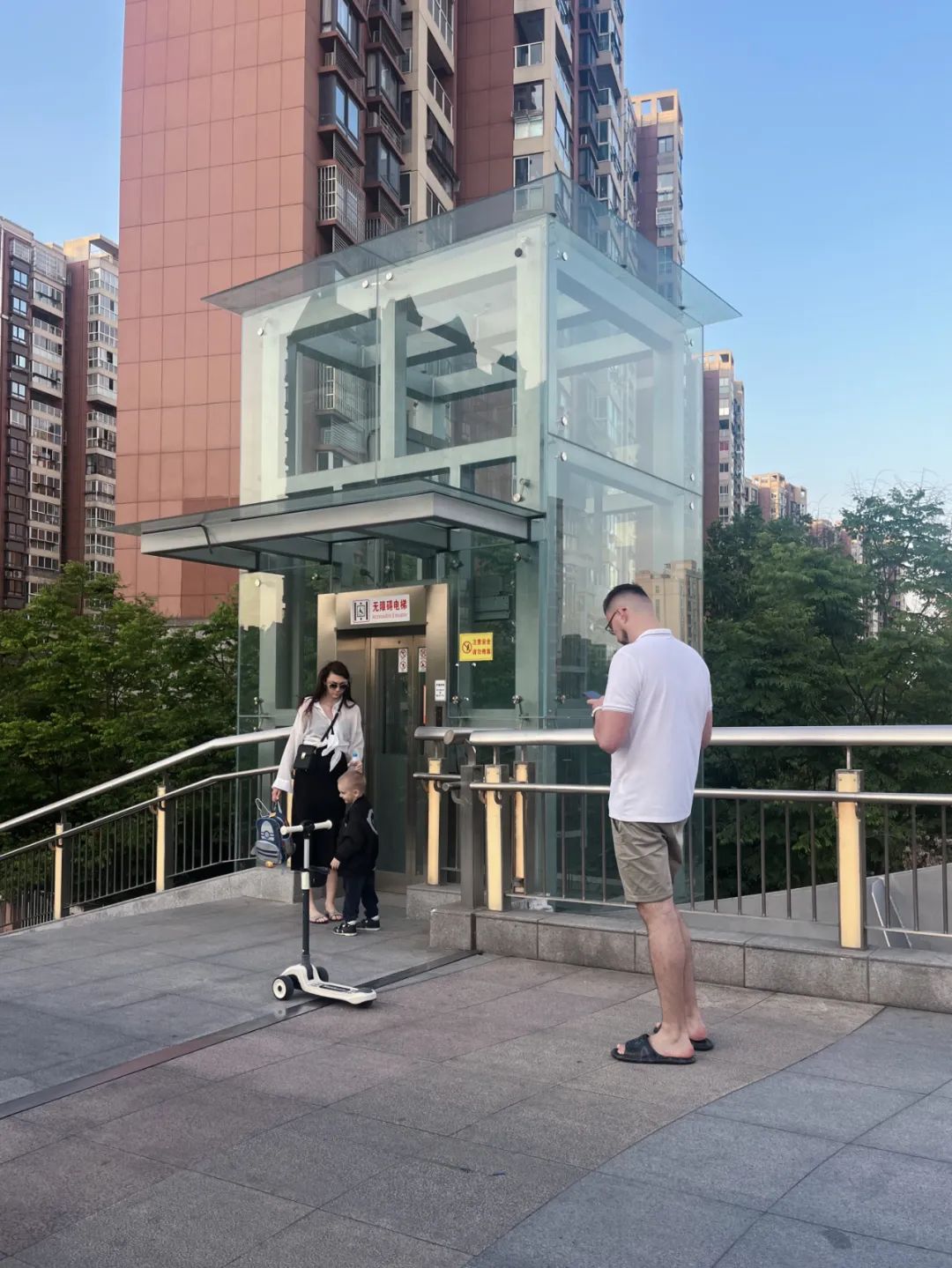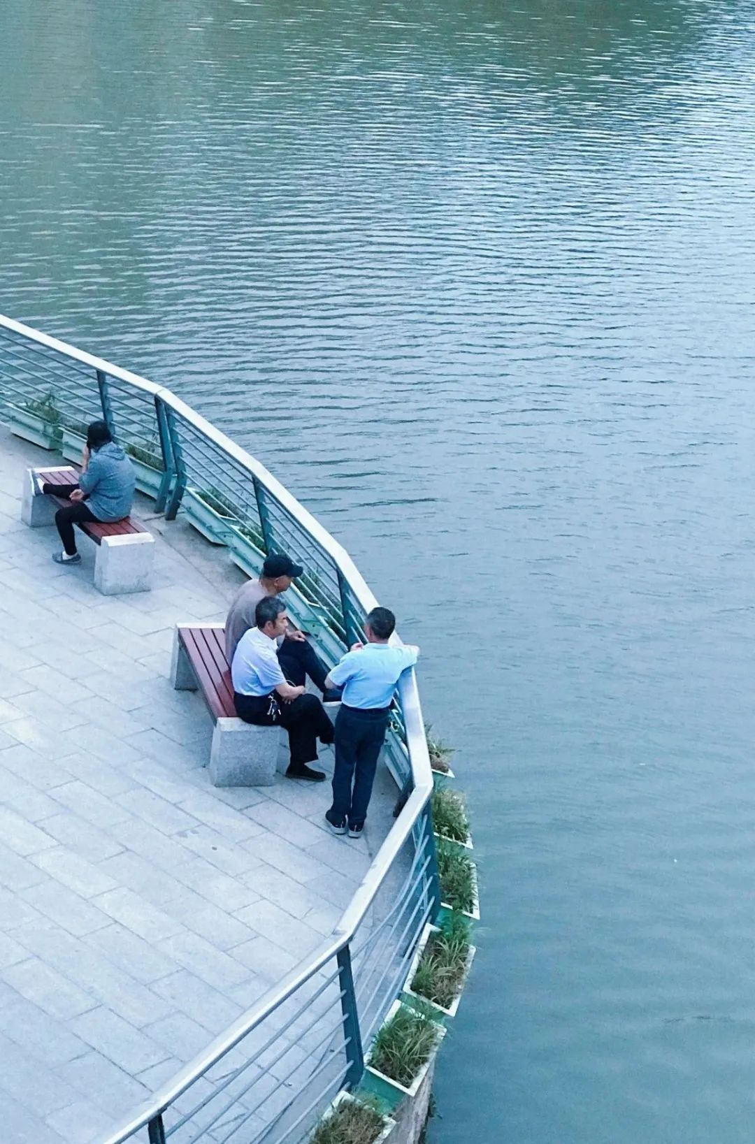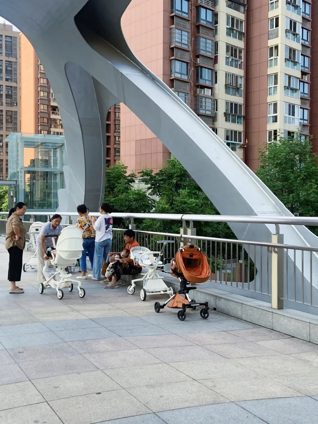 傍晚,在桥上交流育儿心得。