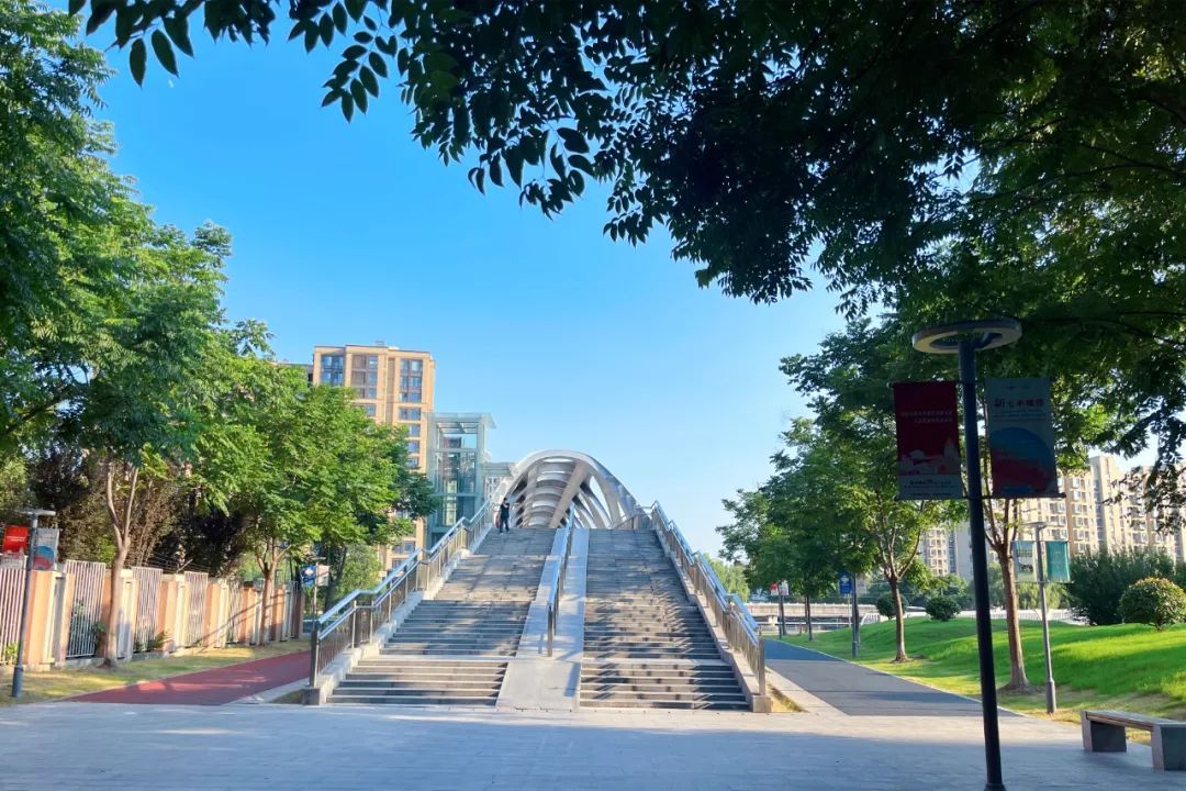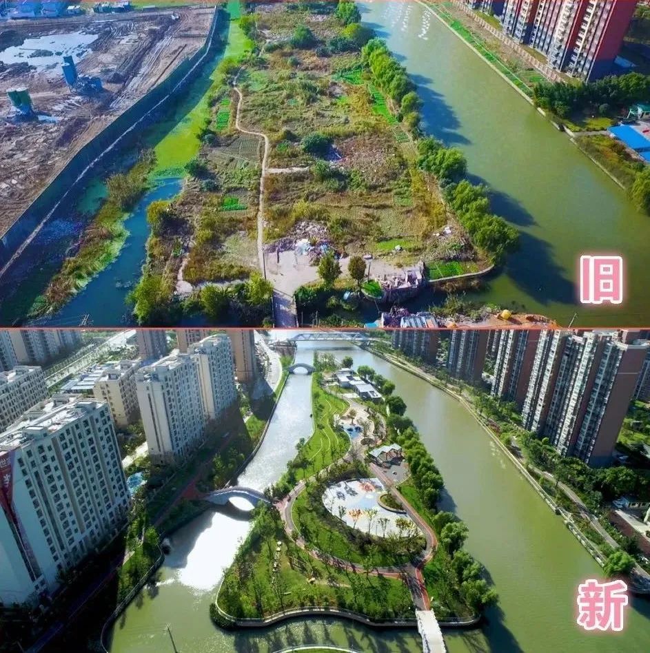 而今,胡渡浜人行桥桥畔的长岛公园,驿站、厕所、健身步道、儿童乐园、篮球场、拓展区、健身区……一应俱全。两岸居民通过胡渡浜人行桥,以及新建于长岛公园三侧的3座桥梁,便能方便自如地到公园内,遛娃、体锻、话家常。