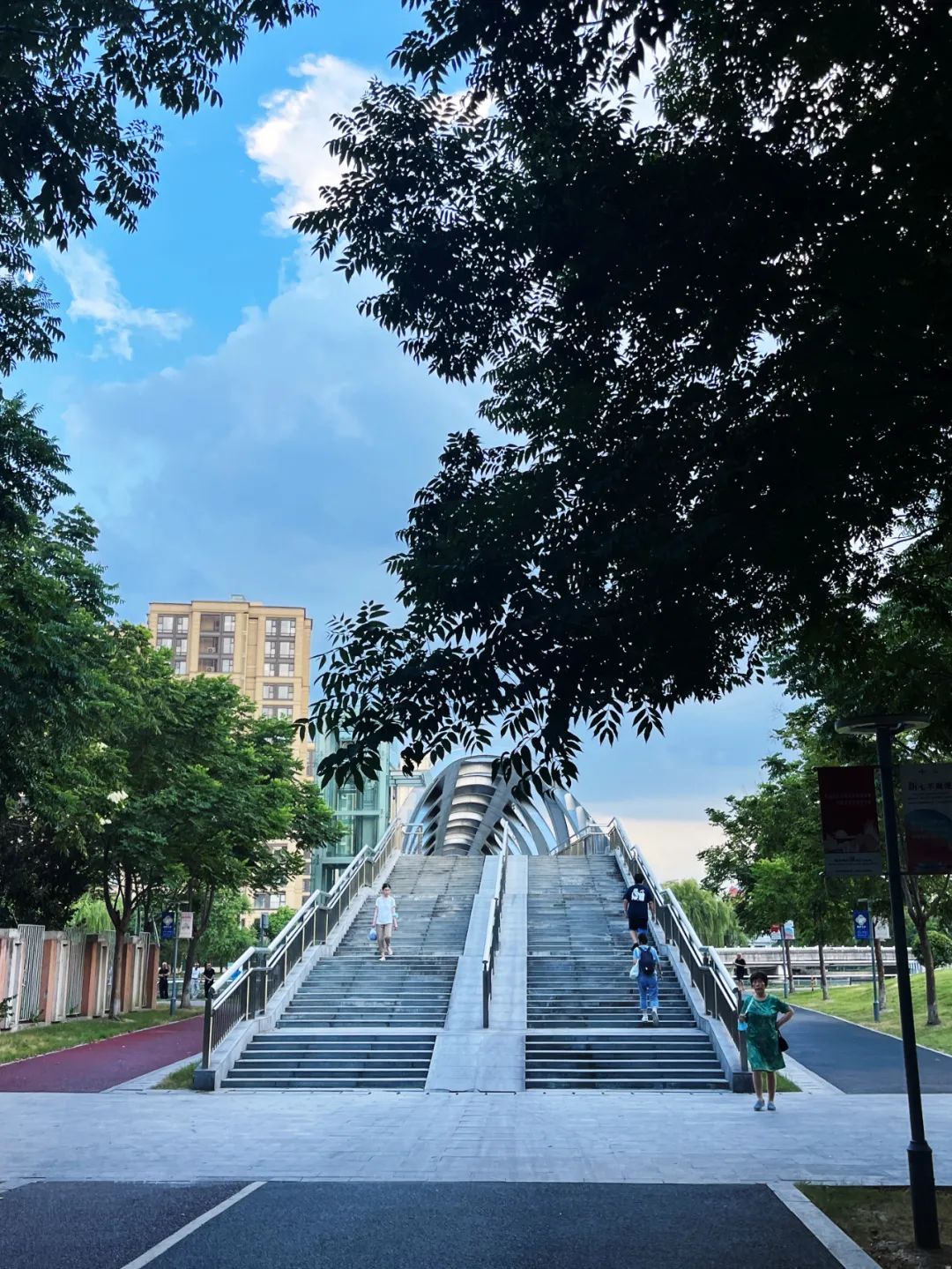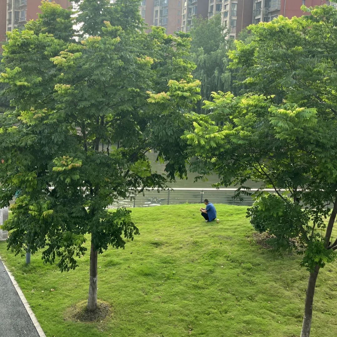 桥边,绿树成荫,绿地如毯,绿意满满的幸福。