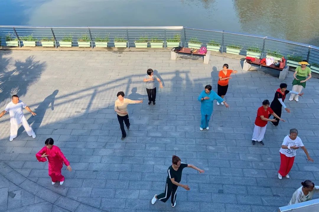 早起,在桥下享受运动的快乐。