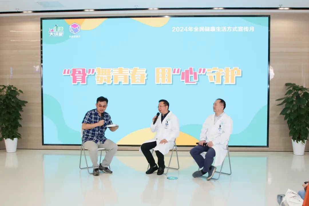 随后讨论了“老龄病年轻化”这一热门话题。骨科专家针对现在年轻人频繁出现肩关节、颈椎、腰椎疼痛等现象,给予建议:“这些症状的出现,大多数和未热身先运动、长时间低头看手机等行为有关,需要建立良好的习惯和正确的姿势。”针对冠心病年轻化情况的出现,心内科专家建议要保持足够的“警惕心”,学会心梗的基本自我判断和必要的自救常识。