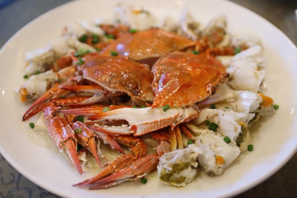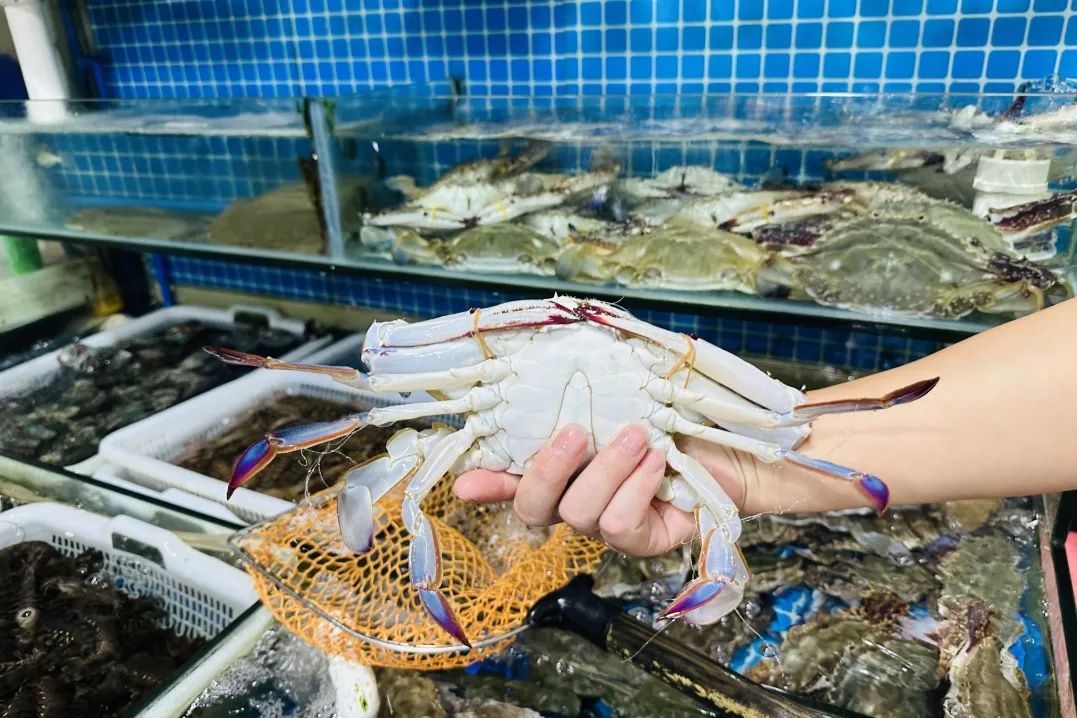 “这个梭子蟹肉质紧实,配点小酒不要太有味道哦!”