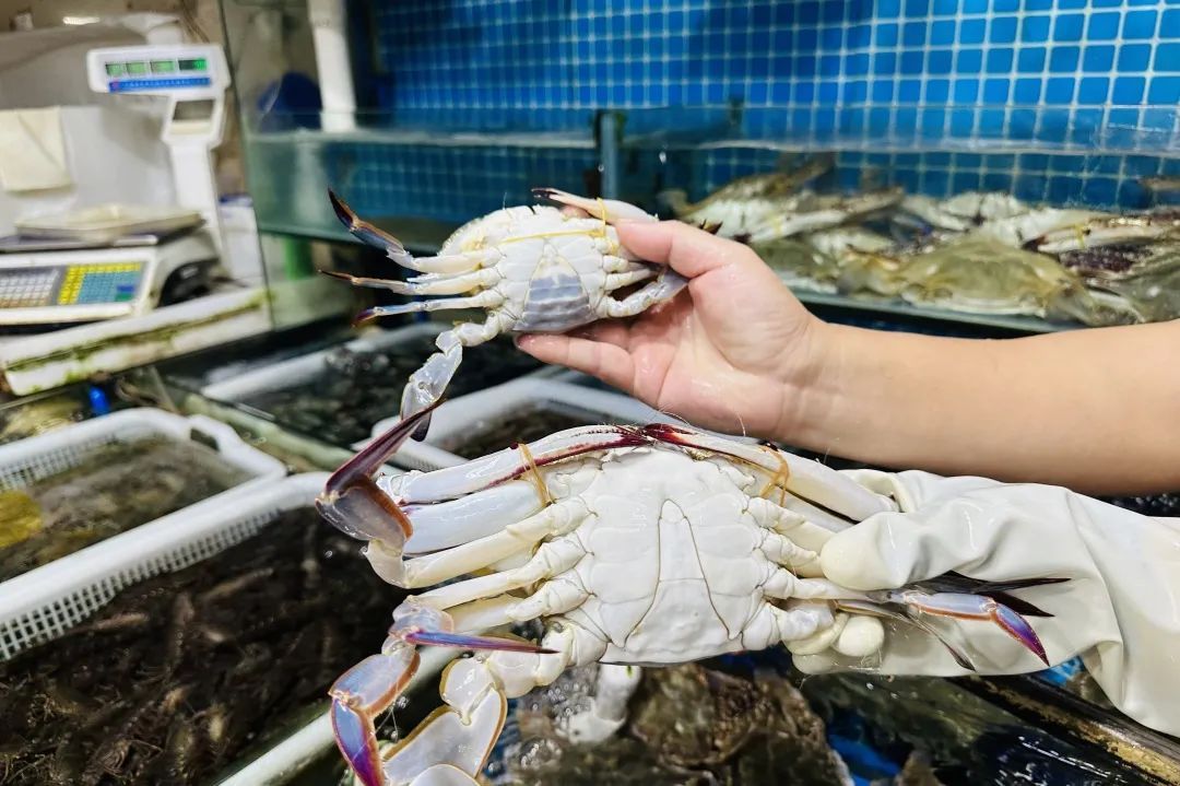 “我就住在这家菜场附近,这里的梭子蟹价格实惠又新鲜,每次买回去葱姜蒜清蒸,家里人都爱吃得不得了!”