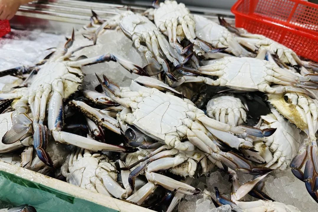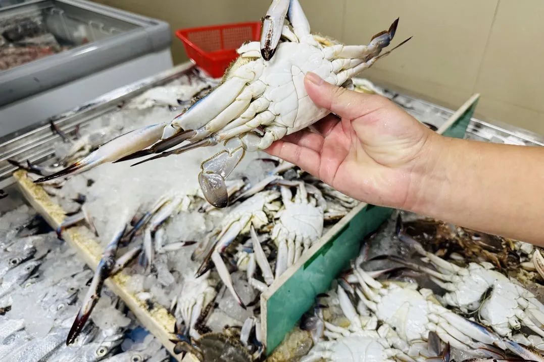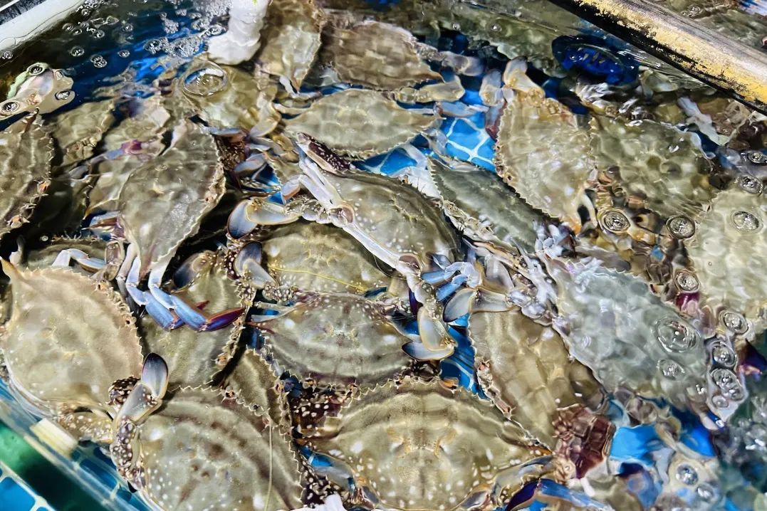 来到顾村的平价菜场之一——翼家菜场,目前梭子蟹养殖蟹以南方蟹为主,受高温天气影响,梭子蟹生长较快,个头也会偏大,整体饱满度很不错。