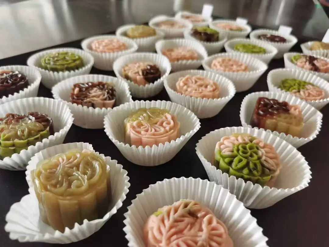 揉面、分皮、包馅、压模......在学员们的操作下,一个个色彩丰富、样式精美的桃山月饼新鲜“出炉”了。