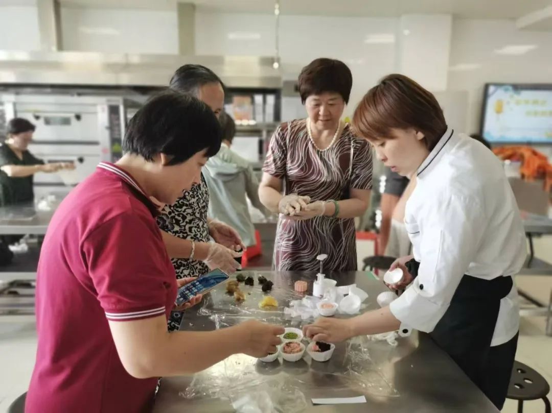 赵老师现场演示了制作月饼的步骤,还讲解了需要注意的制作技巧,学员们全神贯注、认真聆听后,迫不及待地开始动手制作月饼。