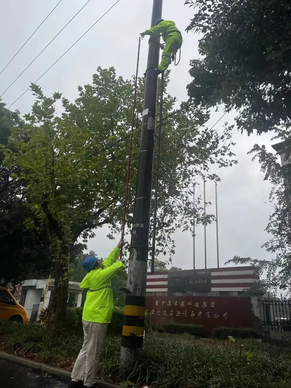松江供电公司供电服务指挥中心主任戴人杰表示:“我们得到停电故障报修后,工作人员冒风雨出动,赴现场寻找故障点,第一时间开展了抢修工作。比如方松街道的天乐小区停电故障,就是因为台风刮断树枝打到我们的高压电线,造成了线路停电。目前电力工作人员首先做好安全措施,把造成线路故障的树木消除掉,然后趁着风雨间隙,登上电杆开始隔离故障点、转移电力负荷等抢修操作。”