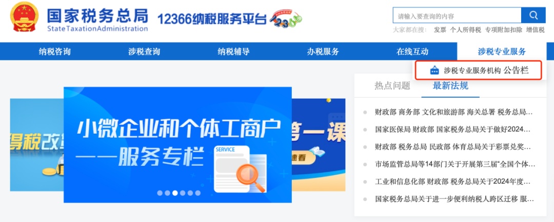 1.点击【涉税专业服务】-【涉税服务机构公告栏】。