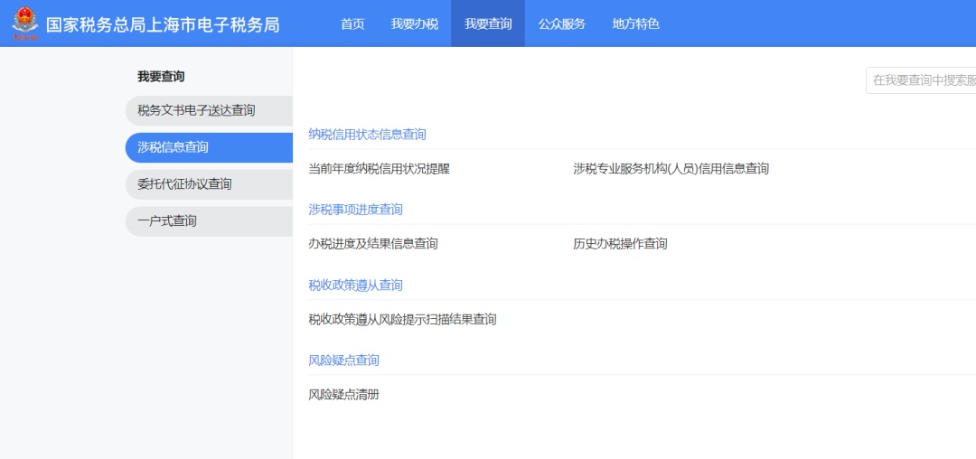 1. 登录新电子税局后,点击【我要查询】 -【涉税信息查询】-【涉税专业服务机构(人员)信用信息查询】功能菜单。
