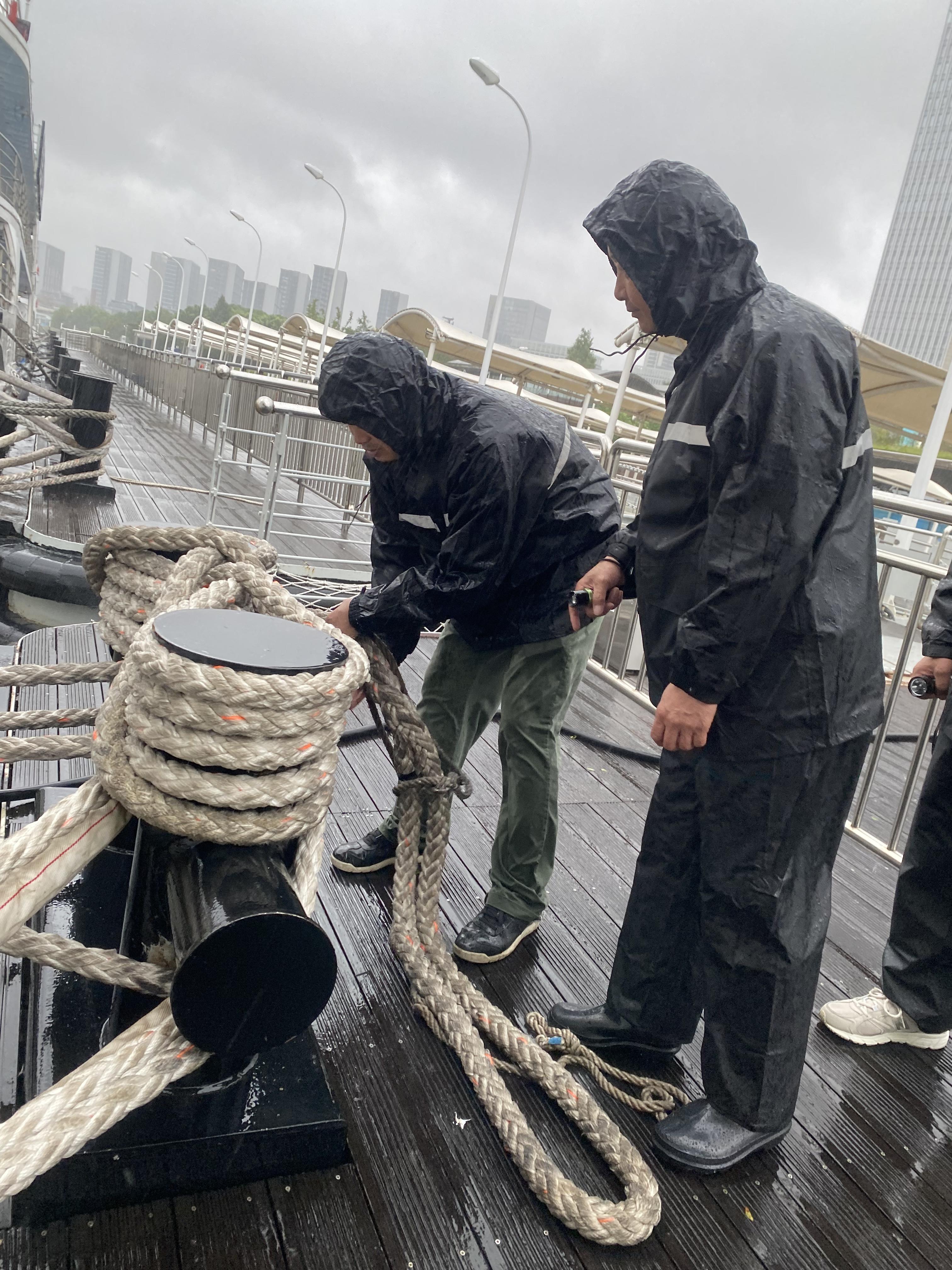 发现缆绳因强风出现松动时,他们迅速行动,齐心协力将缆绳重新固定,确保游船能够安稳地停靠在码头,避免了因缆绳断裂而引发的危险。