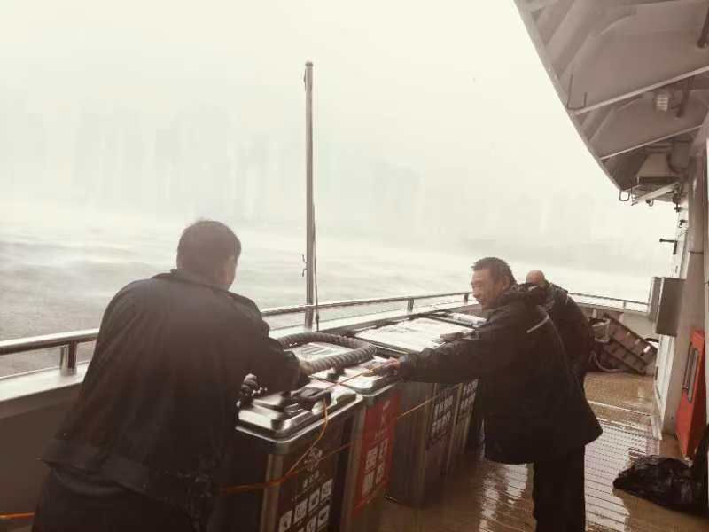台风“贝碧嘉”来势汹汹,不仅带来了狂风暴雨,还使得黄浦江水位明显上涨,给江面上的游船带来了前所未有的考验。从9月14日开始,黄浦江名信游船全面启动了防台工作。作为新兴领域党组织,黄浦区小东门街道“徐大鸣书记工作室”成员及游船上的全体党员、职工,在书记徐大鸣的带领下,无畏风雨,与台风展开了“战斗”。