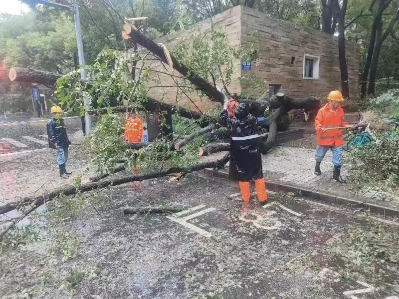 9月16日上午8:55,巨鹿路成都南路、瑞金二路南昌路处分别各有1棵大树倒伏在马路上,严重影响到交通安全,黄浦区金锐公司接到行业主管部门的指令,迅速组织人员第一时间赶赴现场,对现场进行了安全维护,并快速开展了抢险处置,成功排除了安全隐患,确保道路畅通。