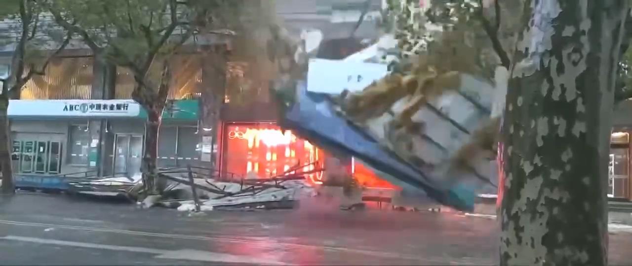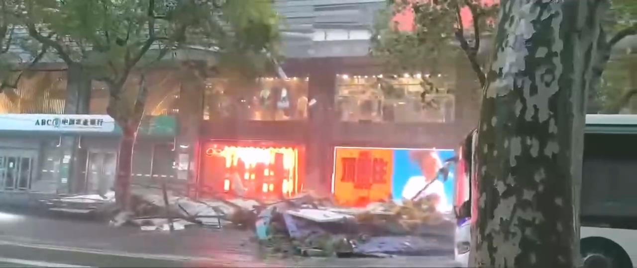而网友拍摄视频显示,受台风影响,淮海中路思南路附近,指示牌轰然倒下,抢险队伍也进行了及时排除,确保道路交通安全。