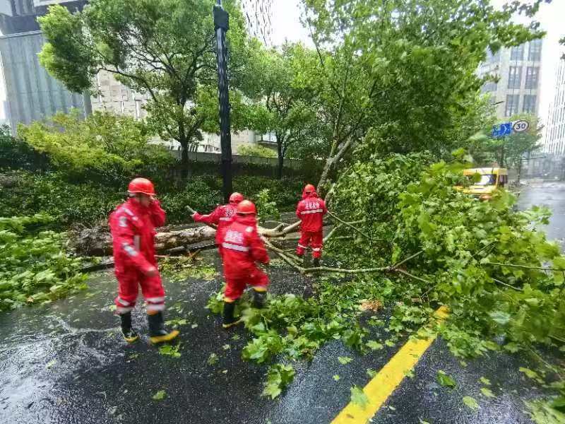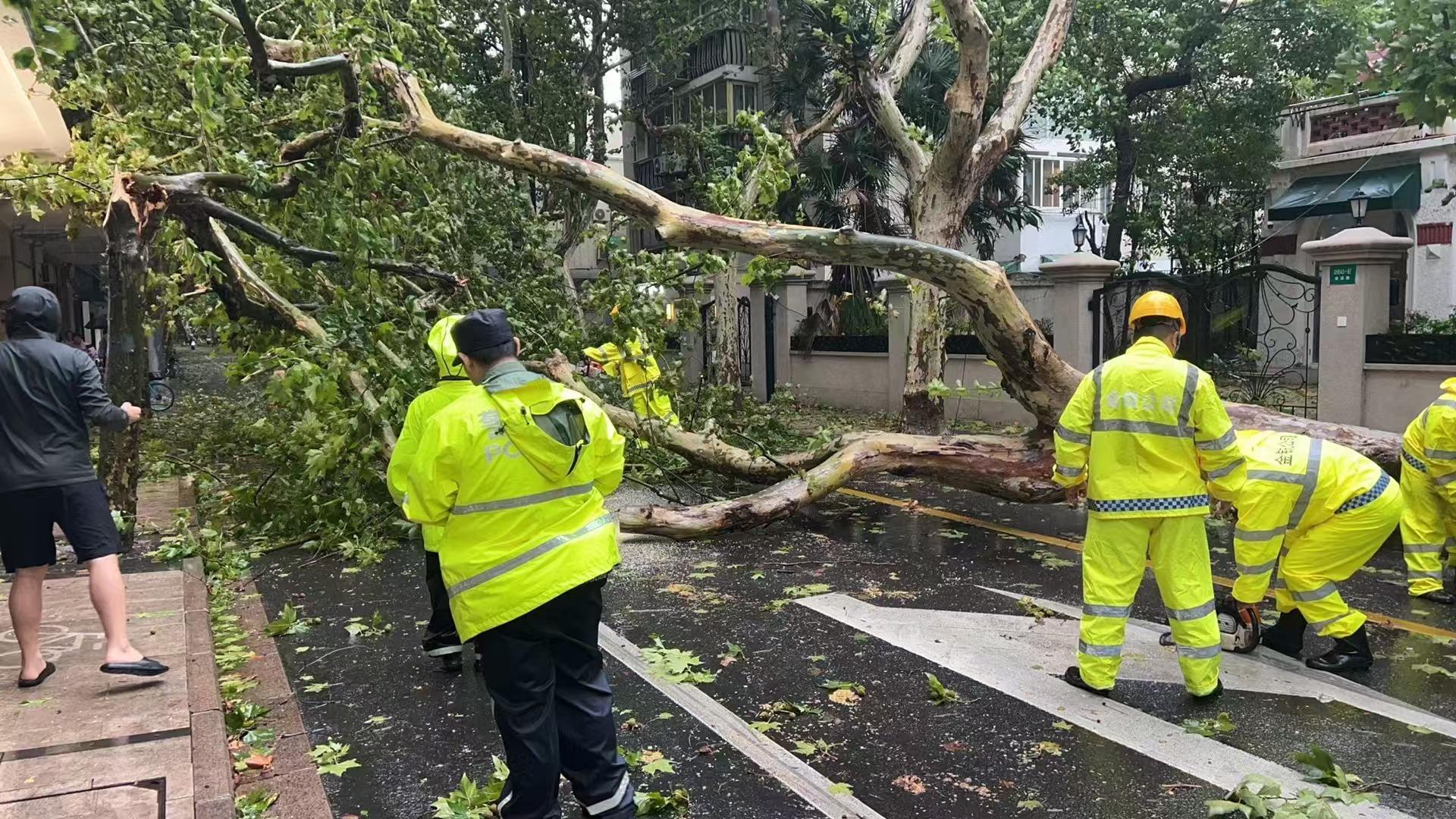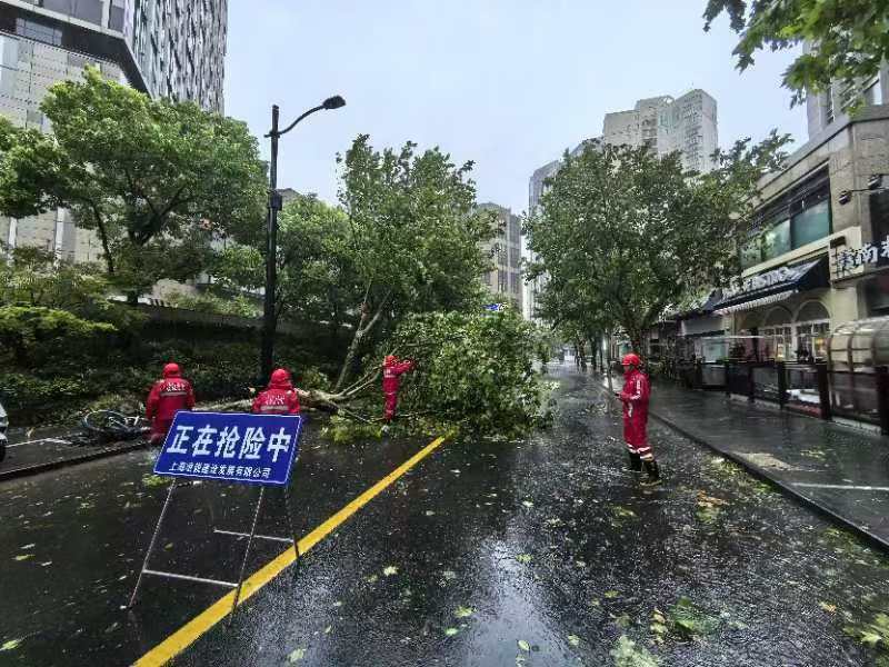 台风在上海登陆,大风大雨对上海造成了不少影响,不少道路树木倒塌,道路指示牌坍塌,影响了道路安全顺畅。黄浦区应急抢险队伍24小时待命,及时排除险情,确保出行安全。