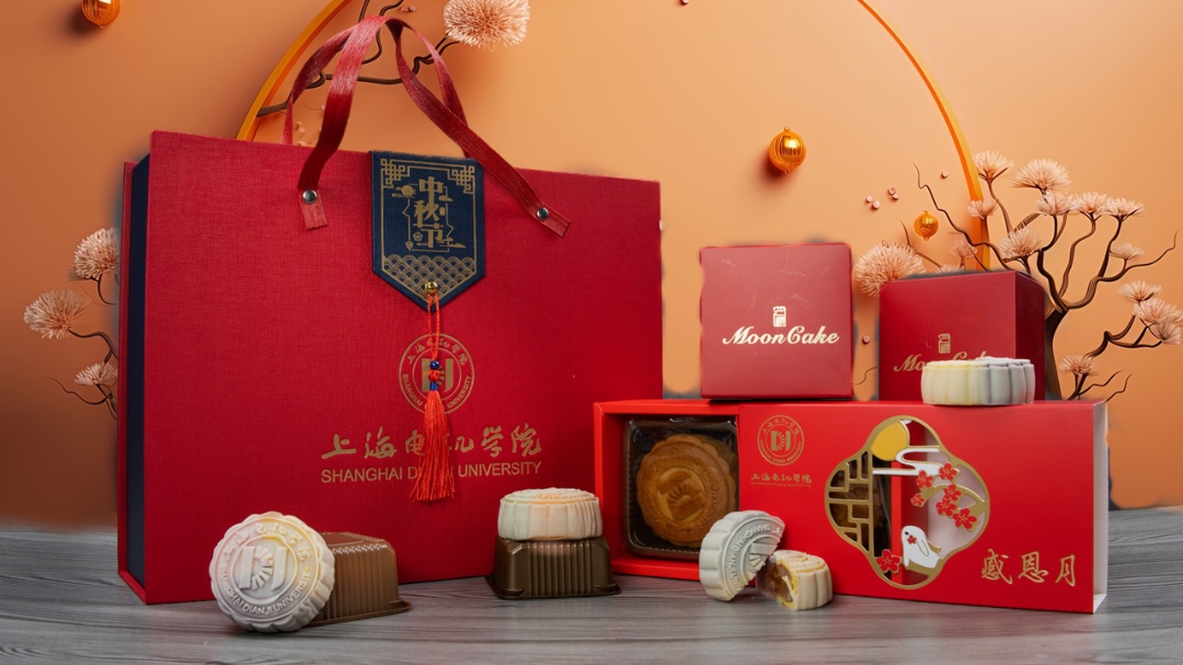 上海应用技术大学专属月饼带着独特的佳节甜蜜如约而至。饱满圆润的月饼烙印上了立体精致的校徽图案,9种口味兼顾创新与传统,向每一位师生校友送去学校的节日祝福,每一口都是幸福与团圆的滋味。