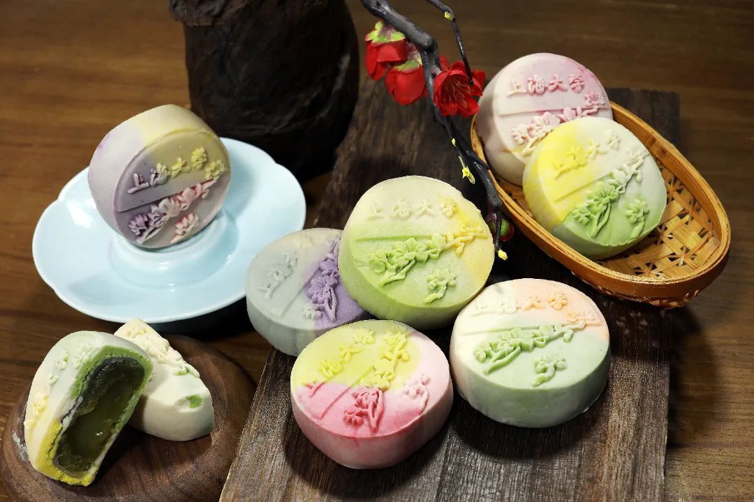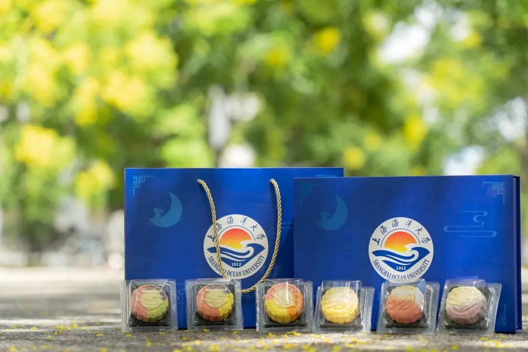 上海海洋大学今年推出奇亚籽草莓、米乳桂花芋泥、奶香椰蓉、浓情巧克力、珍珠红豆五种口味的月饼。创新桃山皮月饼口感细腻,内里是层次丰富的夹心,入口的瞬间给人惊喜。香甜的月饼代表上海海洋大学对师生真挚的祝福。