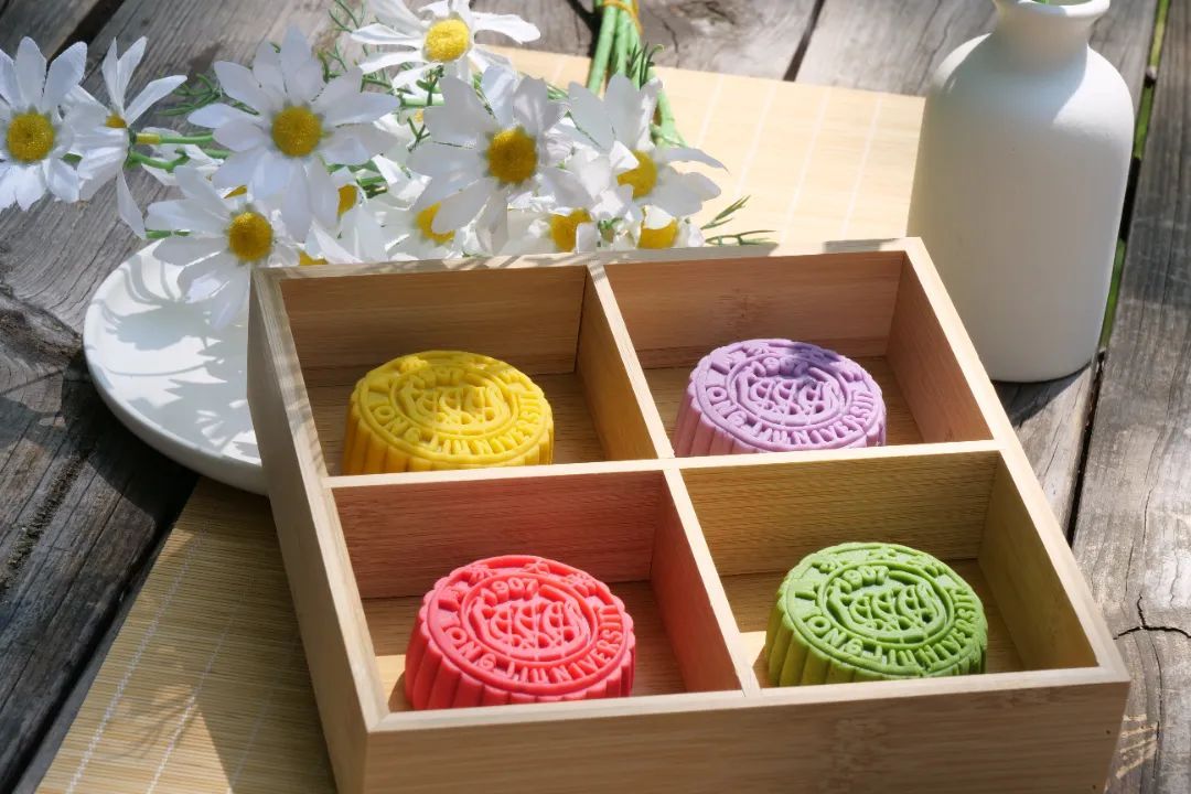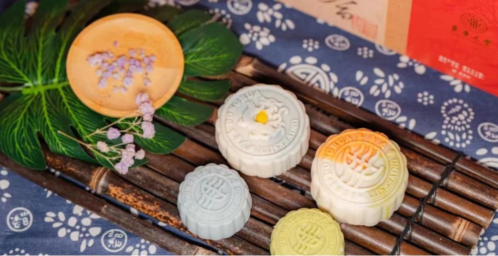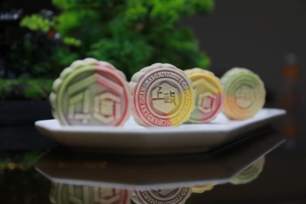 上海商学院推出奇亚籽酸奶草莓、海盐芝士、奶香椰蓉、浓情巧克力、酸甜山楂、桂花芋泥、甜蜜红枣、龙井茶八种不同口味的广式月饼,与师生共享浓厚的节日气氛。
