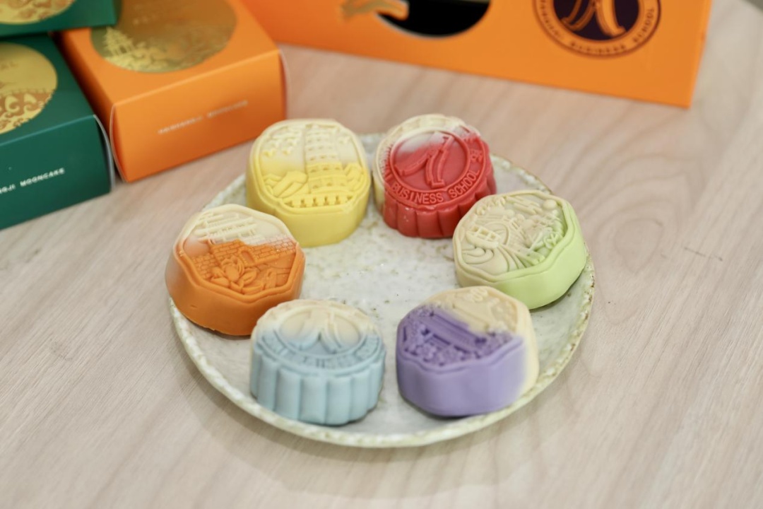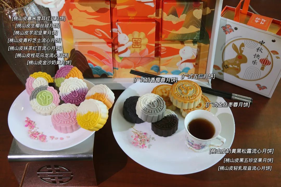 上海立信会计金融学院今年新推出桃山皮月饼,颜值与美味兼备,包括栗蓉杏仁碎流心、龙井茶流心、凤梨椰果流心等七种口味。无论相隔多远,心中那份牵挂,总能在这一枚小小的学校定制月饼中化作温暖,融进心底。