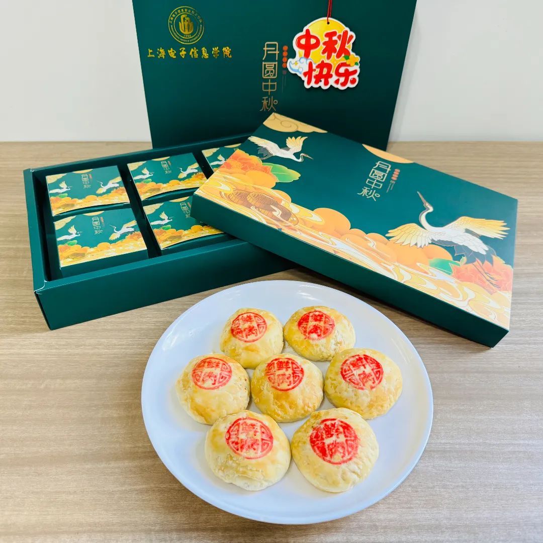 上海第二工业大学中秋月饼色彩明艳,馅料丰富,外皮软糯细腻又带韧劲,可谓颜值和内涵并存。这份精心准备的月饼包裹着甜蜜与团圆,为师生与校友送上真挚的节日祝福。
