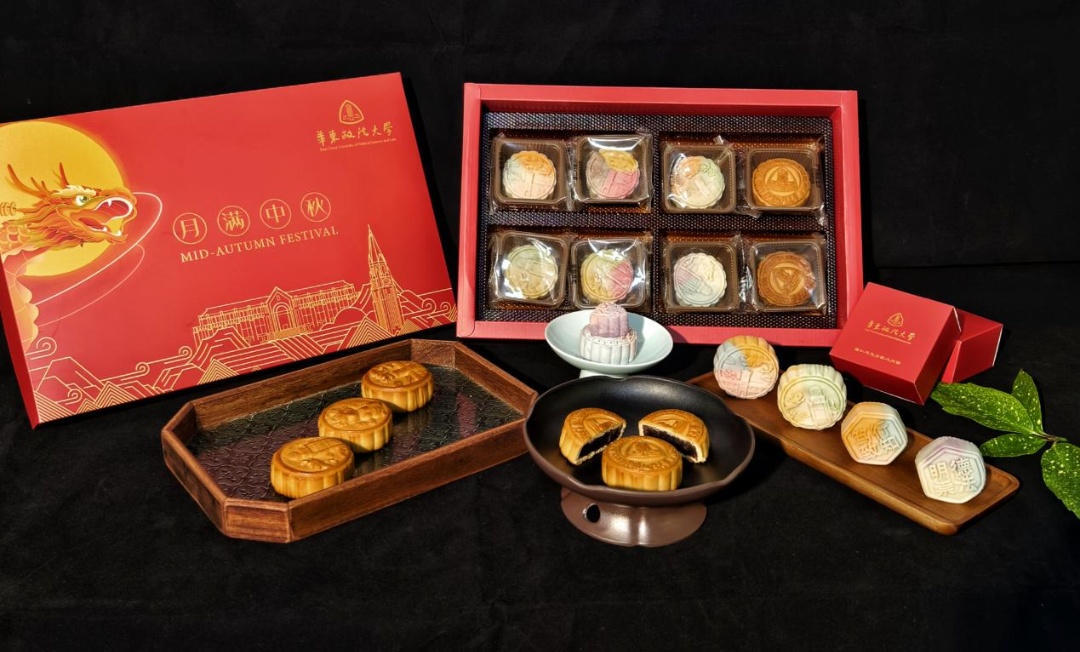 上海师范大学天华学院推出新款月饼,把校徽图案作为月饼的主要设计元素。多种不同的风味,在增添节日气氛的同时,也成为了传递校园文化、展现学子情怀的独特方式。