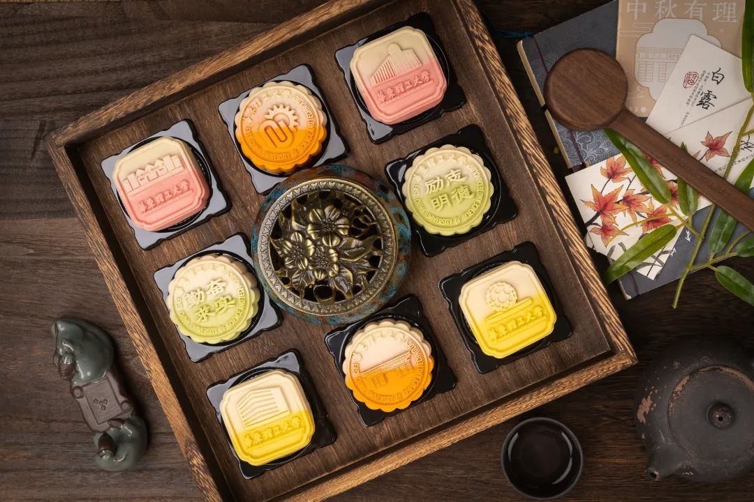 华东理工大学月饼造型设计融合了“方”与“圆”理念,象征团圆、端庄、和谐,外观设计中的华理标志性建筑元素彰显节日氛围和学校深厚底蕴。月饼有奇亚籽酸奶草莓、青柠芝士等8种口味,高颜值与低糖低油兼备,口感细腻轻盈。