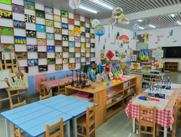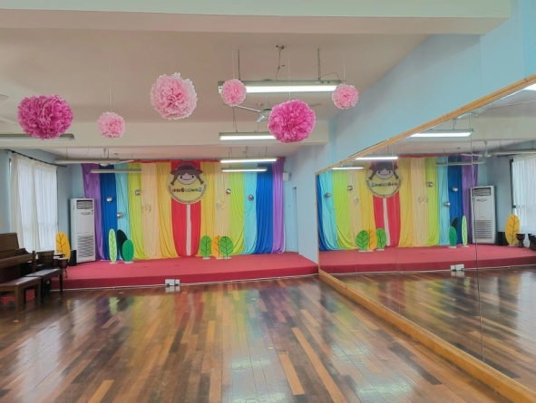 为了满足幼儿的多元发展需要,还配备了建构室、阅览室、舞蹈房、美工室、室内游乐场等5个专用活动室和1个多功能活动室,打造凸显艺术特色的课程环境,彰显浓厚的艺术气息。