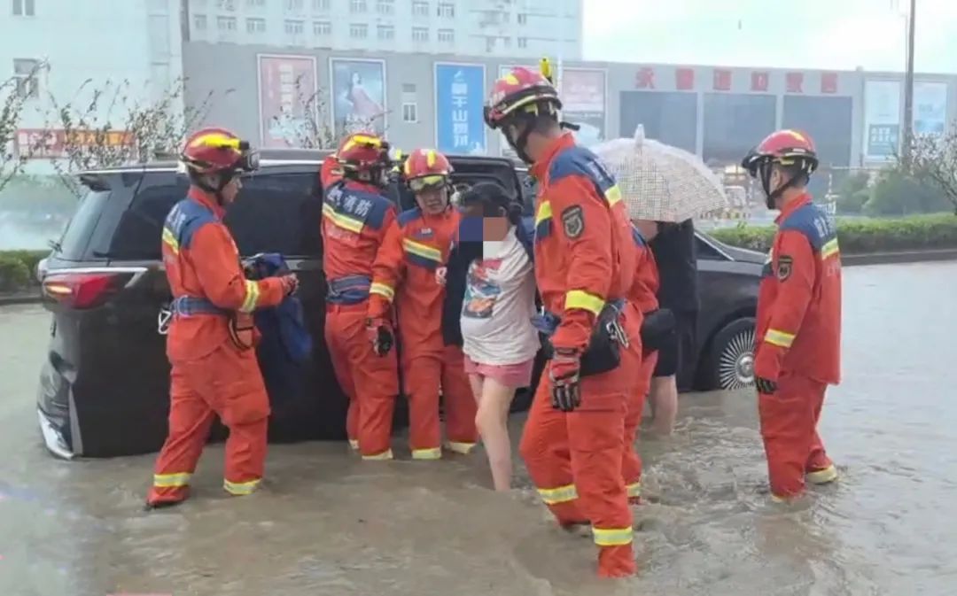 中午12时26分,松江区辰塔路松汇西路路口往南100米处一私家车因涉水熄火,车上两名老人、一名孕妇、一名儿童和车主共5人被困。接到报警求援后,辖区仓桥消防救援站立即出动救援,第一时间将被困人员疏散到消防车上躲避风雨。待随后派出所民警抵达,消防员们将被困人员交由公安转移至安全场所,方安心归队。