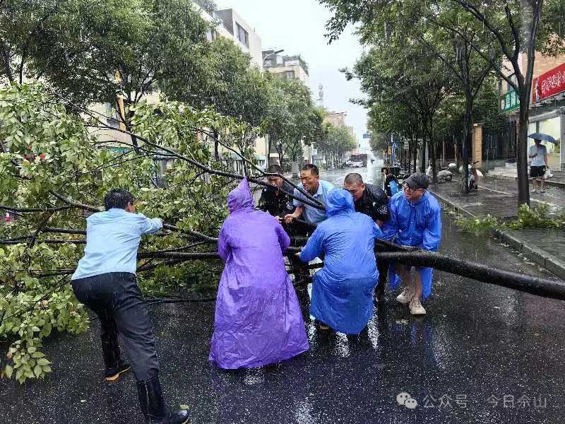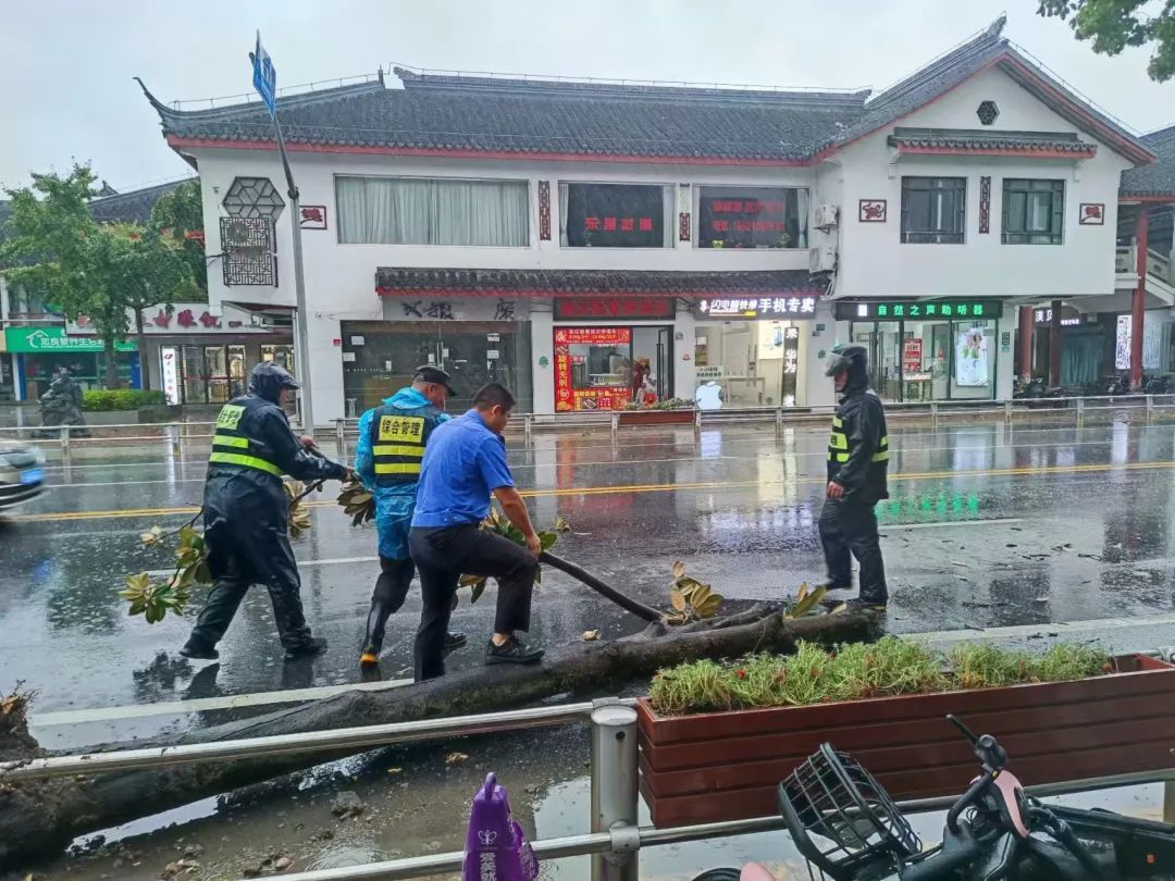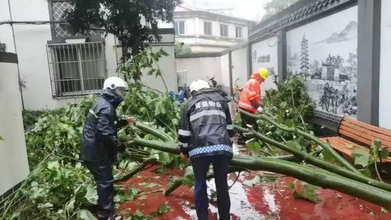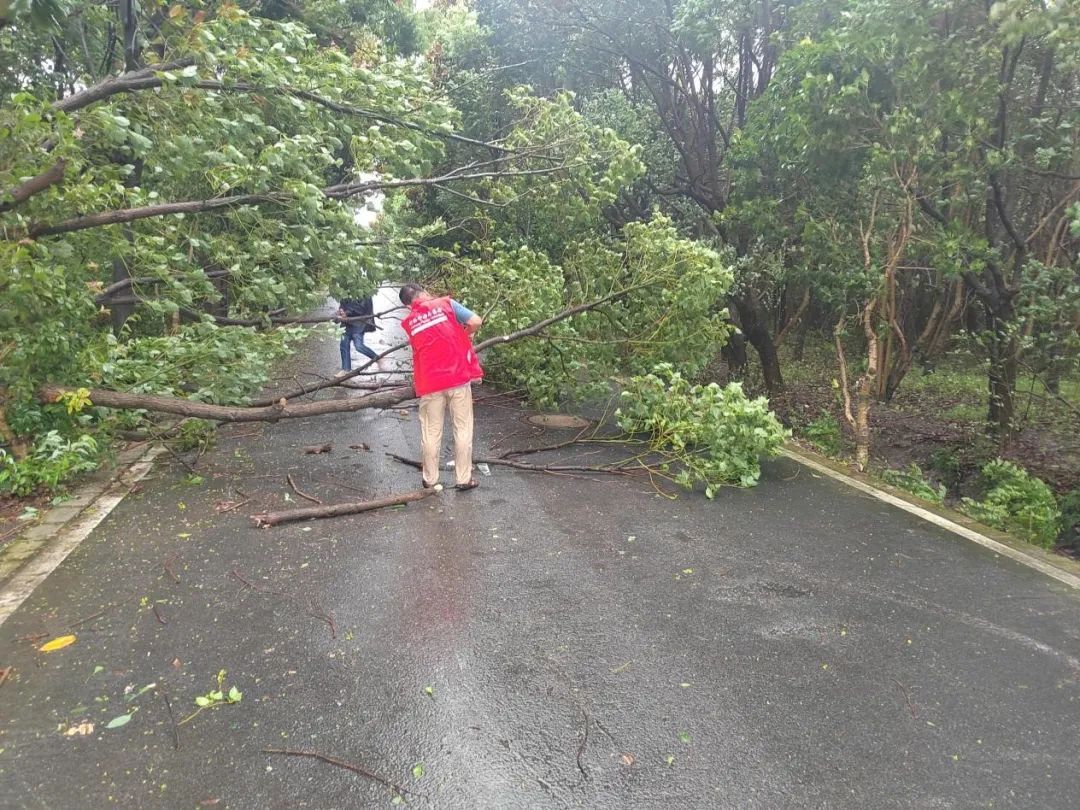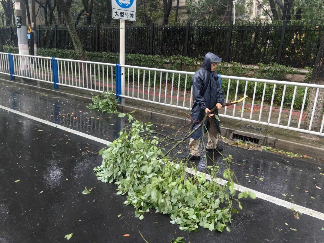 针对倒伏树木及其他安全隐患,街道第一时间组织人员冒着风雨开展处置,确保道路通行安全及行人安全。