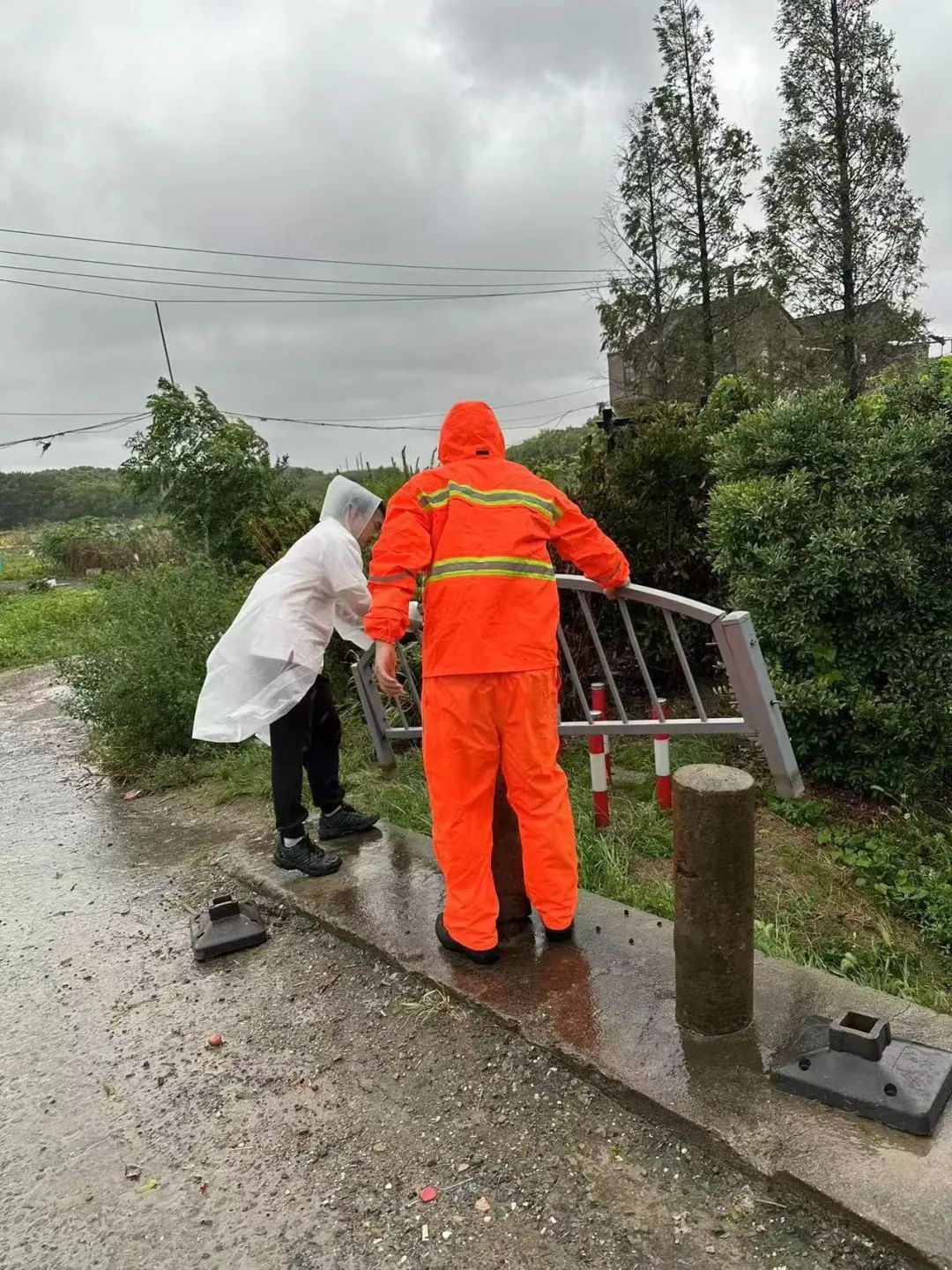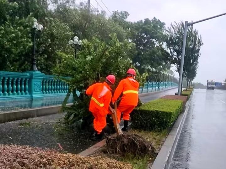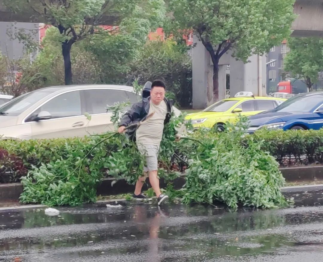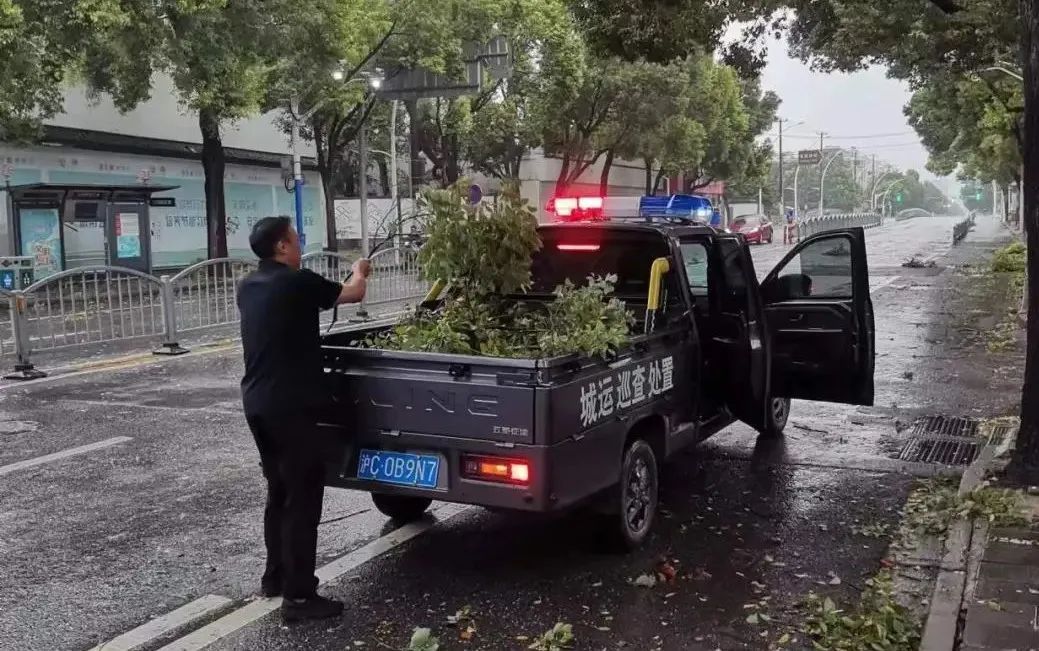 针对倒伏树木及其他安全隐患,街道第一时间组织人员冒着风雨开展处置,确保道路通行安全及行人安全。