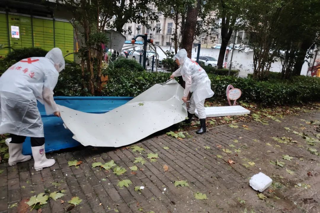 各居民区也及时组织社区工作人员应对台风期间产生的各类安全隐患,快速处理居民家门口的麻烦事。