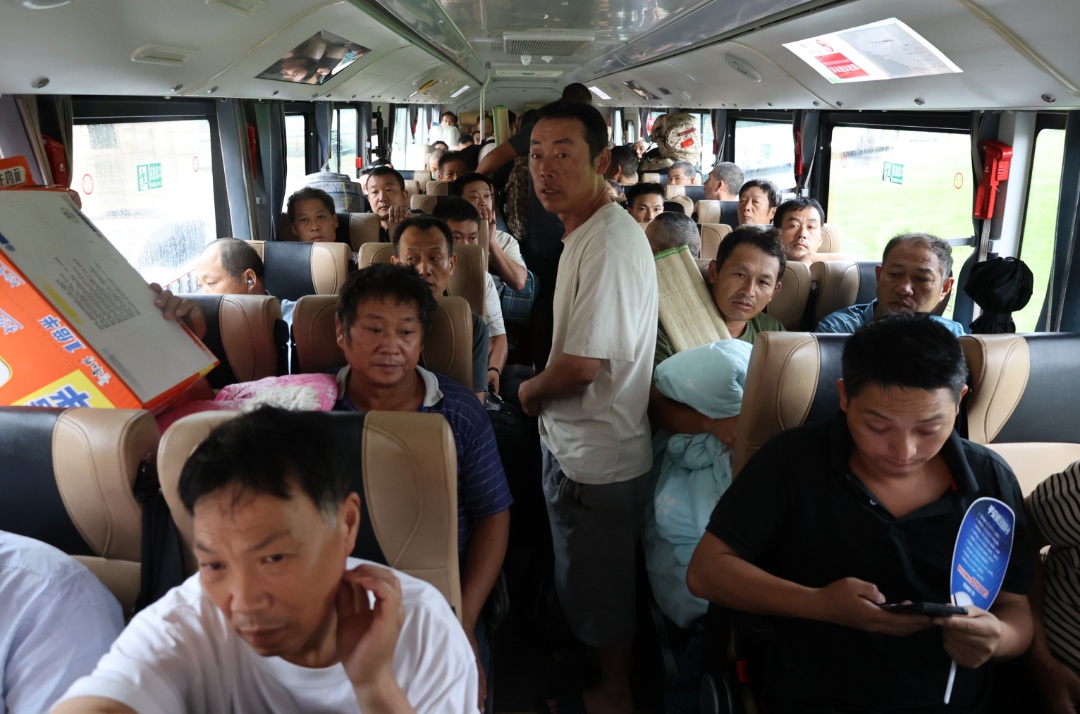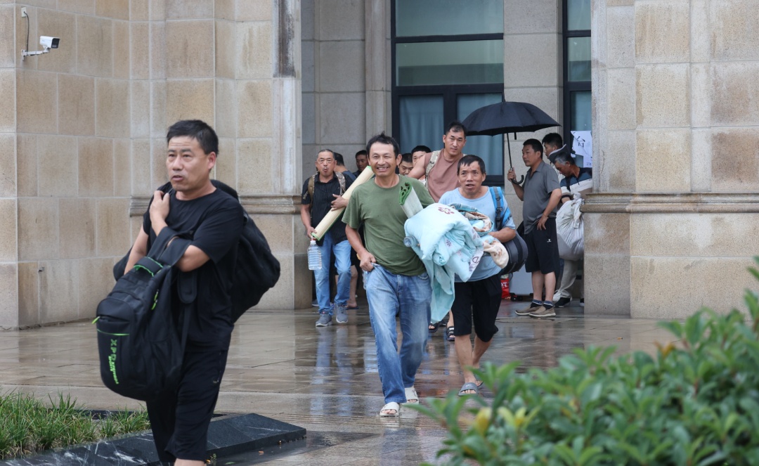 16点30分,曹先生跟着大部队,坐上指定的公交巴士,顺利返程。撤离前夕,便有不少工友开始打扫场地卫生,统一将垃圾规整在一处,“政府为我们提供了遮风避雨的地方,而且有空调有热水。来的时候这里干干净净的,我们撤离了,也要干干净净的。”工友汤师傅说。