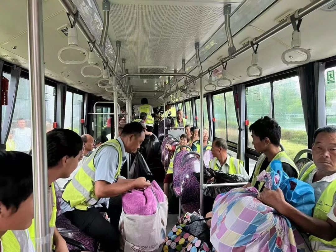承接接送任务的是金山巴士。接到任务后,公司迅速调集了10辆大巴车,组成了一支应急接送队伍,前往各避险转移安置点,将工人接回,过程中还帮助搬运物品,为他们提供了及时、温暖的帮助,彰显了金山巴士在特殊时期的人文关怀,充分展现了企业的社会责任。