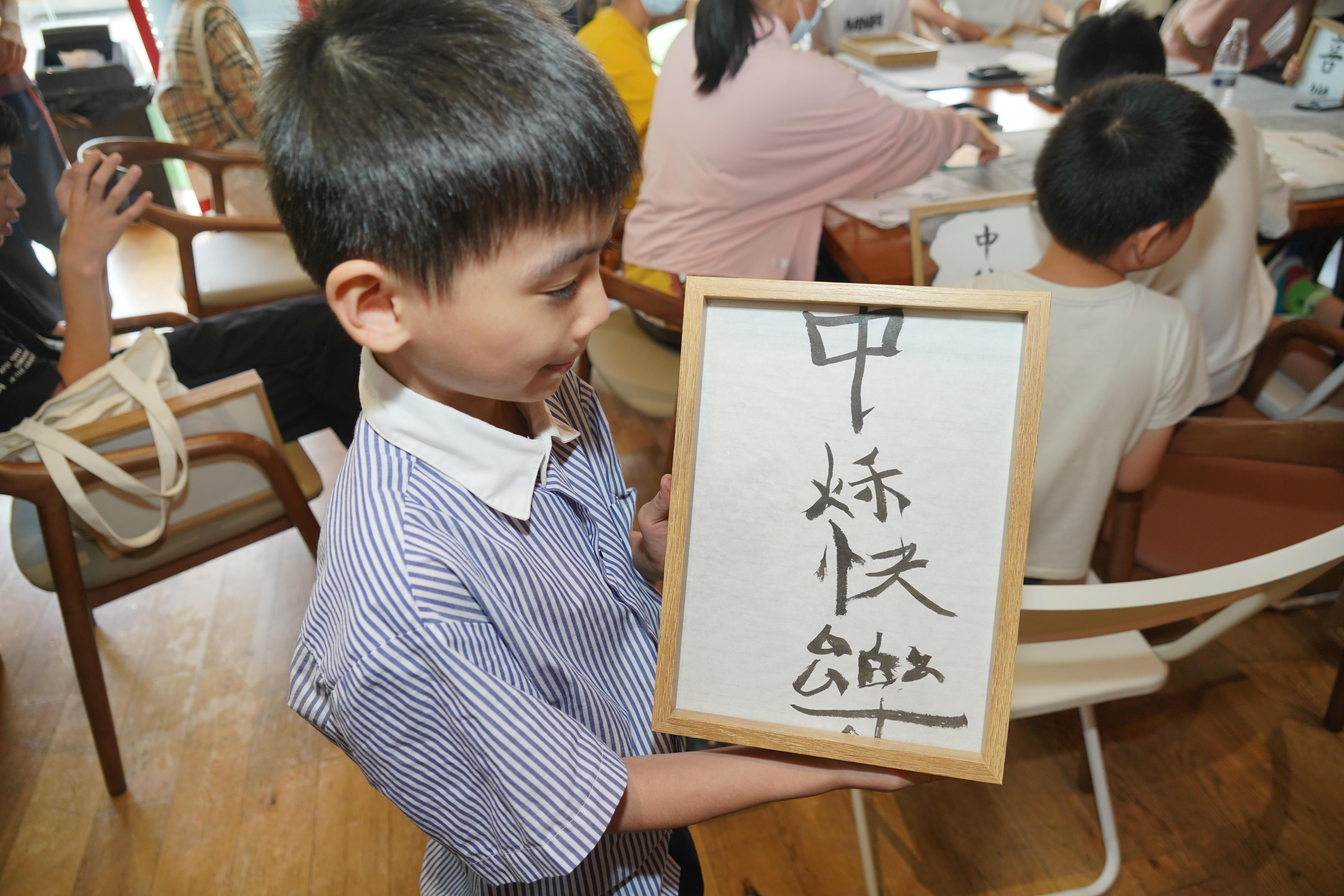 在书法创作的过程中,亲子家庭携手并肩,共同挥毫泼墨,书写中秋主题词句、美好祝福语等。孩子们在家长的悉心指导下,一笔一划认真书写,不仅掌握了书法的基本技能,更在无形中加深了对传统文化的理解和尊重。一幅幅充满爱与祝福的书法作品,见证了家庭成员间深厚的情感纽带和共同的文化追求。