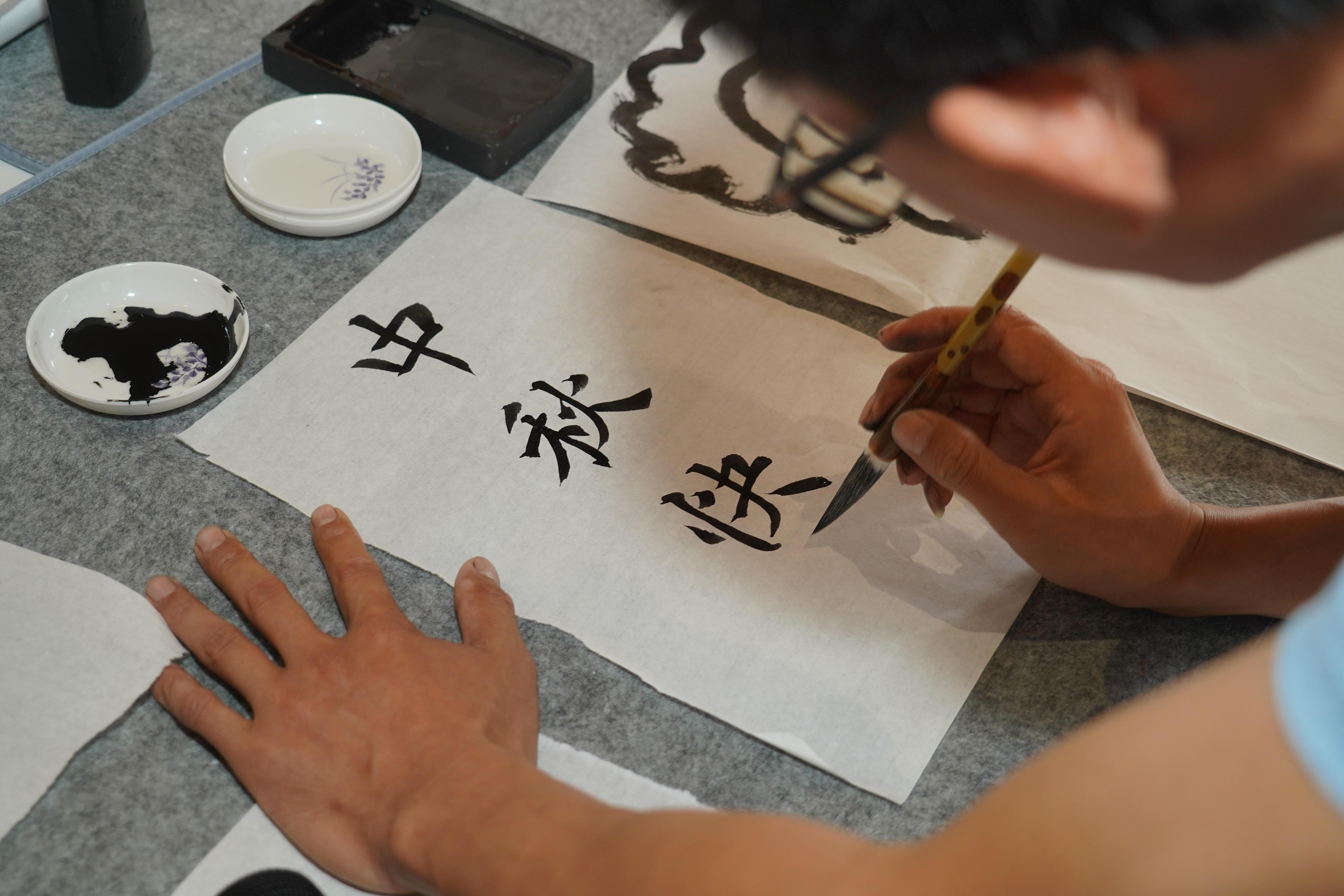 在随后开始的书法艺术体验环节,专业的书法老师为到场的家庭、特别是孩子们,深入浅出地讲解了书法的基础知识,并巧妙地将中秋节的传统习俗与诗词欣赏融入其中,让未成年人在学习书法技艺的同时,也能更加深入地了解和感受中秋文化的独特韵味。