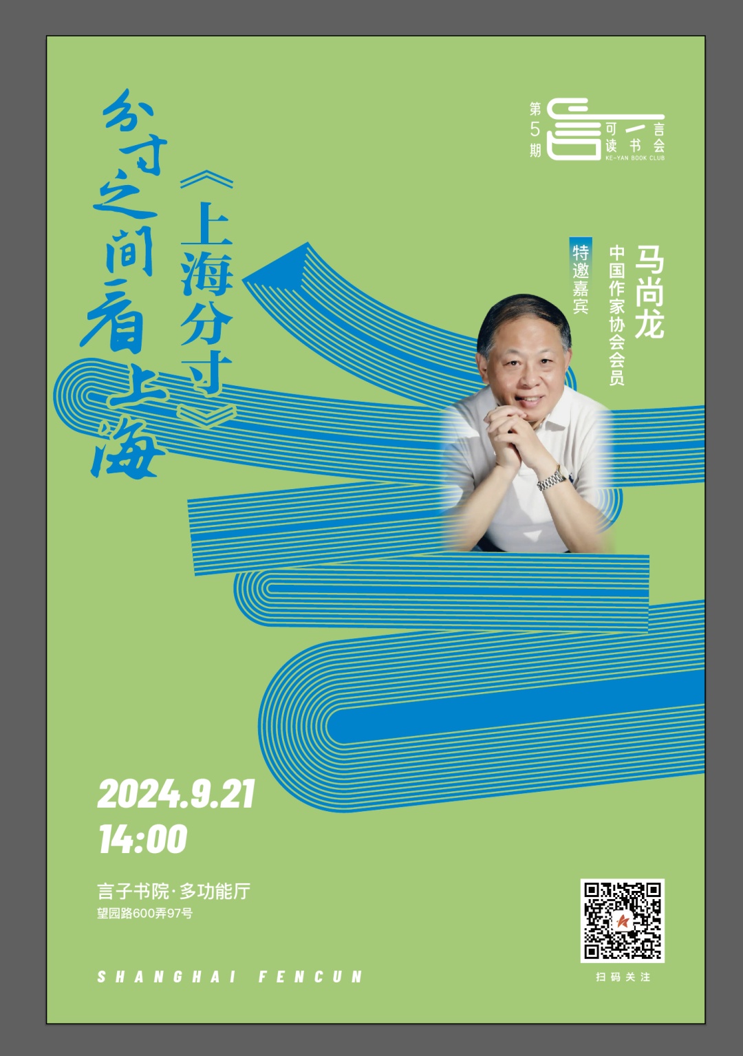 本期可言读书会,我们将邀请“作家中把上海两个字用得密度最高”的上海“爷叔”,中国作家协会会员马尚龙老师来同我们聊聊《上海的分寸》。马尚龙老师解释过他为什么这么热衷于写上海,他说:“一是因为我是上海人,我熟悉上海,我热爱上海;二是因为上海值得我写,值得所有的作家写。我写的上海更多的是在写上海开埠170多年以来的社会文化的变迁、公序良俗的由来,上海为什么会成为我们心目中的上海。” 《上海分寸》是马尚龙老师上海三部曲的最后一本,继《上海制造》《为什么是上海》之后千呼万唤的作品。它 着力坦诚上海的细节。细节是大上海,细节也是小马路;细节是大亨,细节也是小赤佬;细节是人民公园,细节也是过街楼……” 《色戒》里汤唯最后一句台词“去福开森路”里“福开森路”就是现在的网红建筑“ 武康大楼”所在的武康路。 刘海粟、钱钟书、冯玉祥、柳亚子、何香凝、史良等等这些历史名人都曾经居住于 复兴中路这条仅874米长的马路上。 “爱在华师大”而不是“爱在复旦”、“爱在交大”的缘由,可能是因为华师大有一条名字非常美丽的河流—— 丽娃河。 这些上海的“细节”都将在这本书里被一一呈现,上海的分寸也因为这些“细节”而呼之欲出。 凡事皆有分寸,并非凡事都在讲分寸。因为分寸不是口号,也没有理论教科书,分寸是靠拿捏才能感觉是否得当的。上海的分寸,是上海人的拿捏,不在上海人的脸上,是在上海马路、建筑、弄堂、商店里,是在上海人的家庭、学校、亲情、朋友中……2024年9月21日(周六)