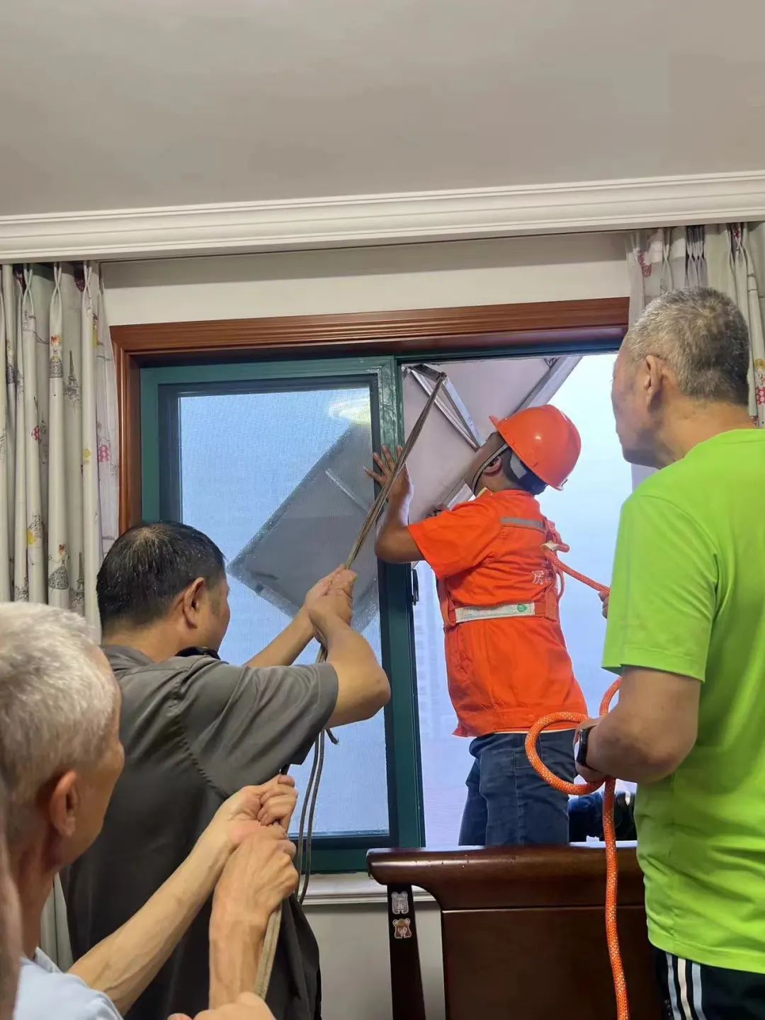 接到求助电话后,邓超毫不犹豫地冒着台风和大雨,带着居委会干部、物业抢修人员,第一时间赶到周女士家中。面对险情,邓超没有丝毫犹豫,他登高作业,把头探出顶棚外,用金属杆牢牢固定住摇摆不定的铁皮板,成功排除了这一重大安全隐患。