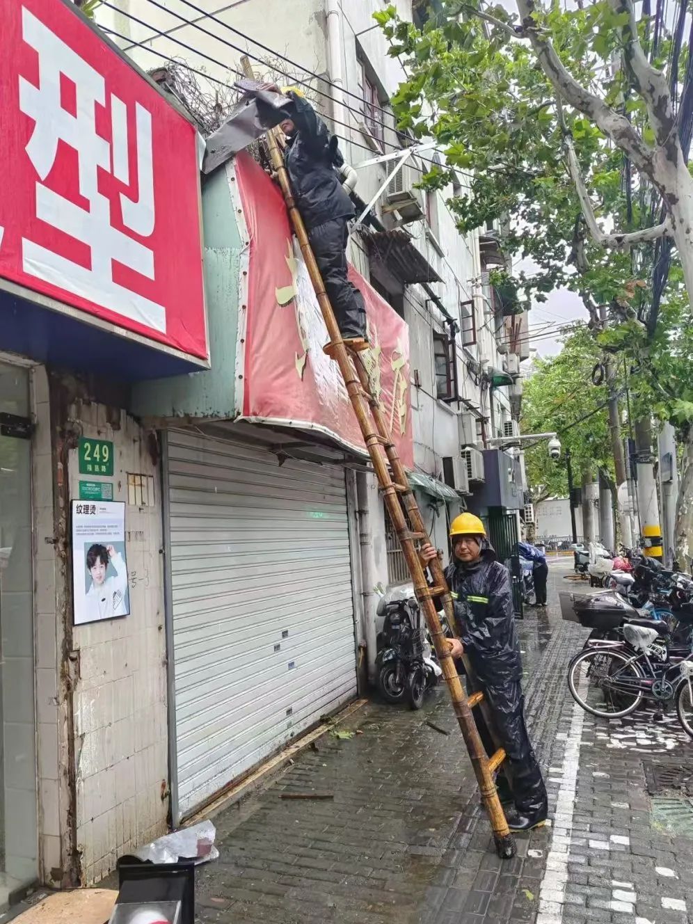 9月16日,在台风“贝碧嘉”的猛烈袭击下,新江湾城社区雍景苑小区经历了惊险的一幕。