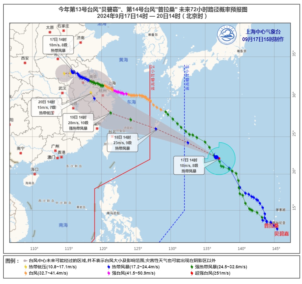 “普拉桑”将以每小时40—45公里的速度向西偏北方向快速移动,强度变化不大。预计“普拉桑”将于18日傍晚到夜间进入东海,较大可能于19日下午到夜间在浙江沿海登陆(强热带风暴级,25~30米/秒,10~11级),之后强度逐渐减弱。目前判断“普拉桑”在浙江中部以南登陆的可能性略大于在浙江中北部登陆。