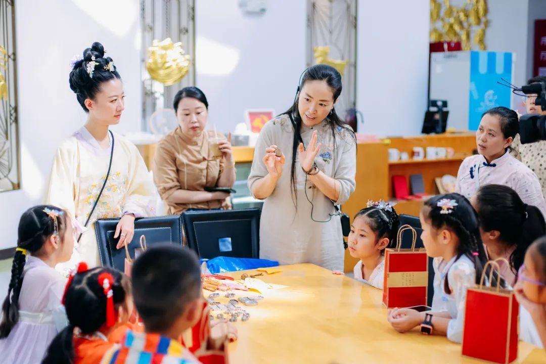 值得一提的是,中秋佳节,市民游客穿中国传统服饰来馆内打卡,便可享免费入馆游玩,收获惊喜礼物,吸引了一大波古风爱好者的热情参与。古风爱好者化着淡雅古韵的妆容,身着自己心仪的服饰,流连于各展馆之间参与互动打卡、拍照留念,彩灯廊下、茶道庭中,尽情展示“服章之美”,感受传统佳节的温馨与美好。