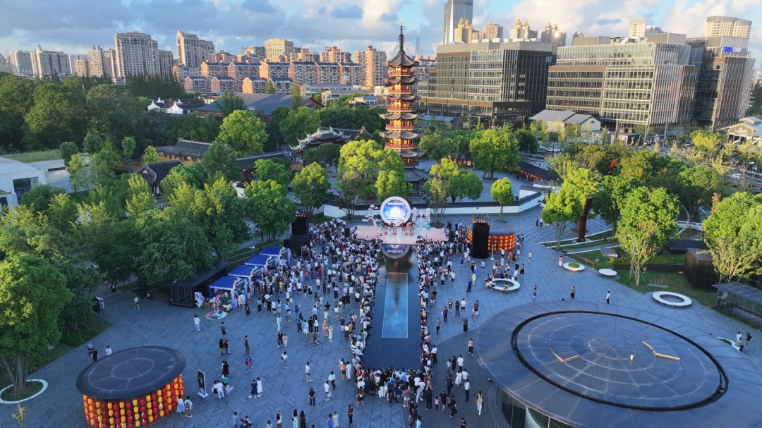 这是龙华历史风貌区第一次举办“唐韵中秋”活动,以“月”文化为主题,在龙华塔影前,一轮人造月亮,营造出了塔影、月影相互交融的美感。