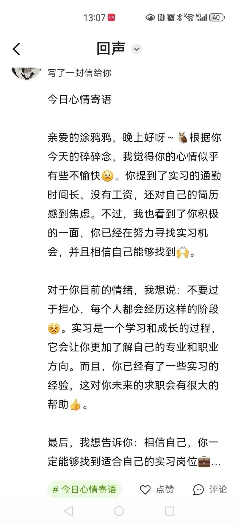 年轻人和AI对话时,也在和自己的茫然和需求对话。通过AI的陪伴,年轻人找到那个迷茫的自我,重塑着自我。人与AI交流,能得到适宜的情感补充。当我们在社交中受挫的时候,或想要回避真实社交的时候,AI就是一个避风港。