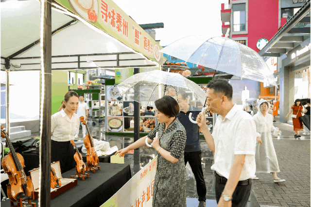 会场外同样热闹。江沙蟹、泰兴早茶、黄桥烧饼、曲霞汤包等美食集市,以及广陵插花、黄桥乐器、泰兴麻将等文创产品展位,吸引了众多上海市民。在品尝地道小吃、了解传统非遗的过程中,上海市民进一步了解了泰州,也有了亲自前去探访一番的强烈愿望。泰州文旅进一步融入了上海市民的生活圈。